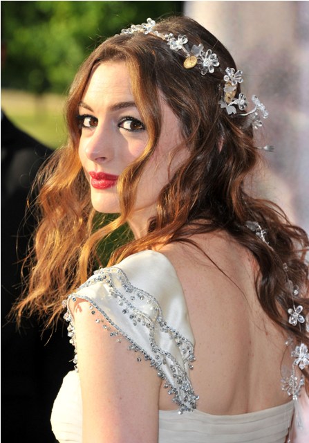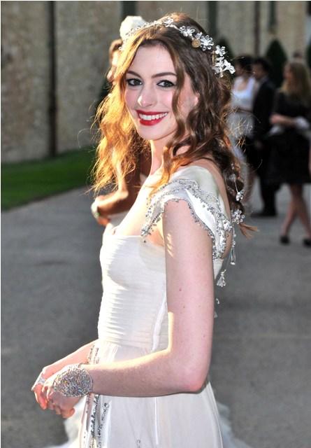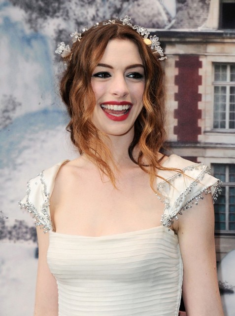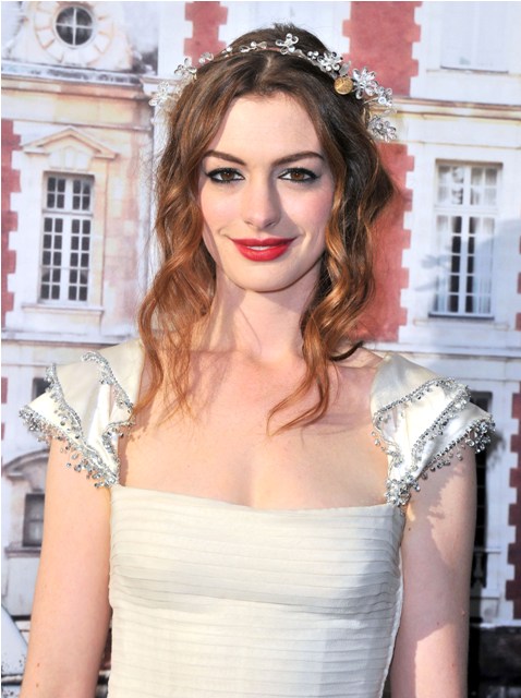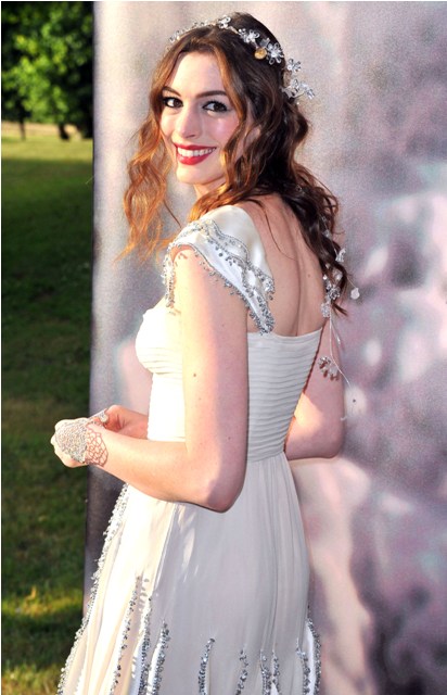 I love everything. The romantic cap sleeves because they remind me of Jane Austen. The soft skirt. The red lips. Like Eve and an apple. And the headpiece! Where can I go where a headpiece like this would be appropriate? Also her hair. It's always this hair for me. Anne is in fine, fine form right now. And now we're just a month out from One Day. Please don't disappoint.