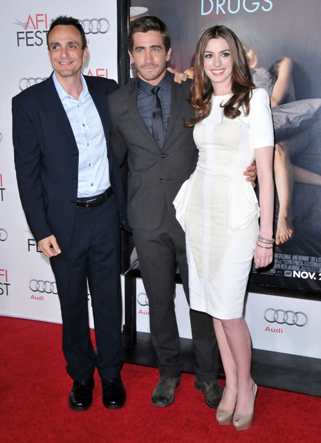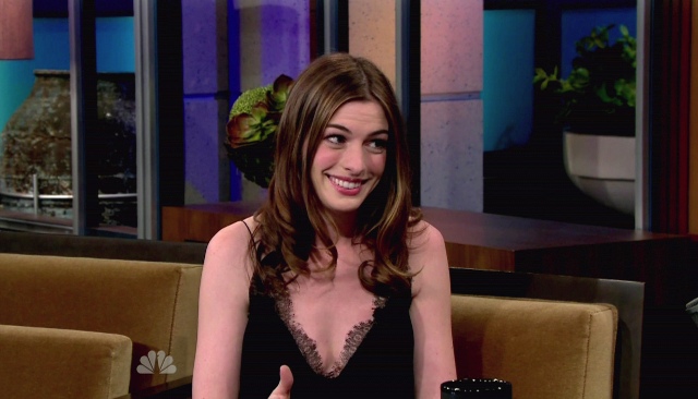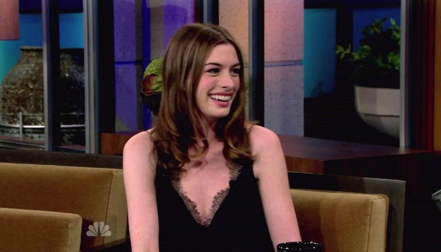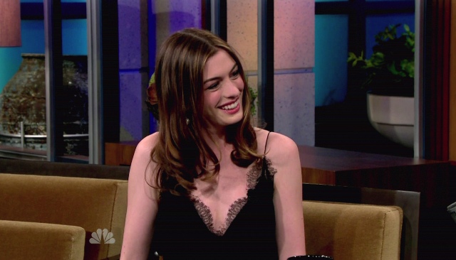 Before Anne attended the screening, she also dropped in on The Tonight Show in black lace. Also attached – Jake and Annie with costar Hank Azaria.