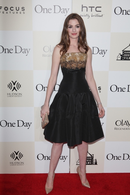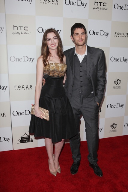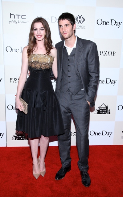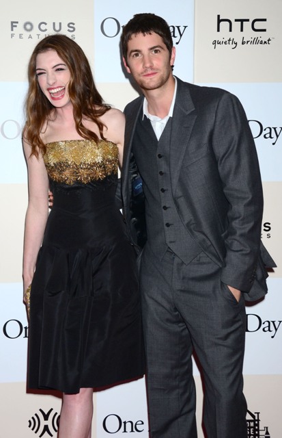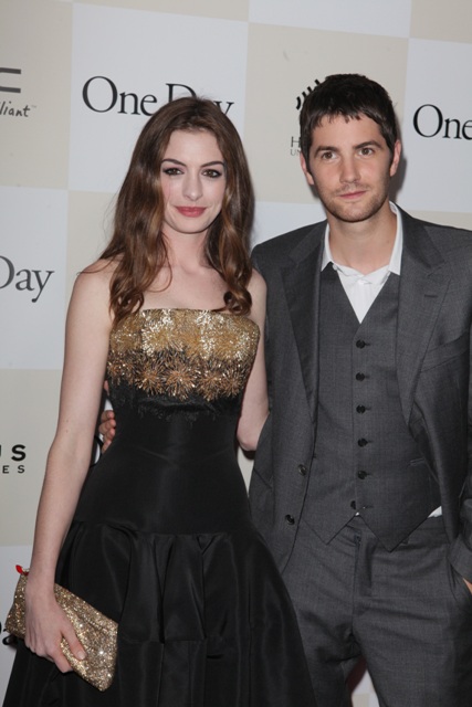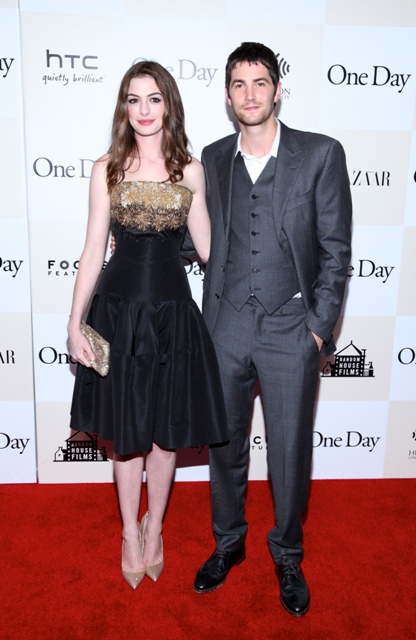 Last night over in New York, Anne Hathaway’s really small waist showed up in an Alexander McQueen dress alongside Jim Sturgess for the premiere of One Day. God I love him. And I know I will love him as Dex. Complicated, selfish, tragic dickhead Dex. Have you seen the 5 clips? They’ve released 5 clips from the movie and Collider combined them all into one player, yay! He is Dex in all 5. It’s very encouraging. As for Anne...