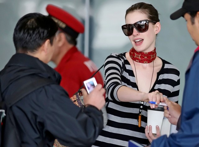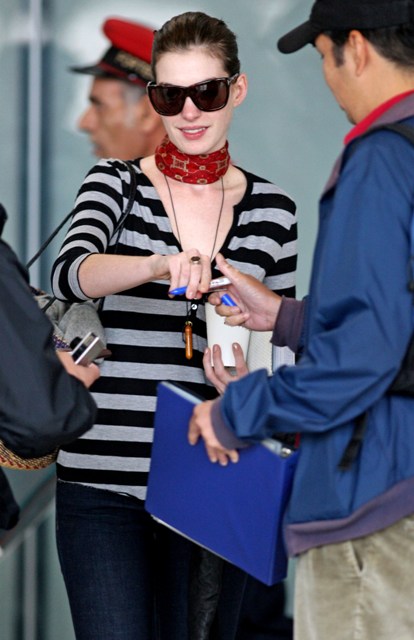 It’s Anne Hathaway leaving at the end of awards season, hopefully giving us an extended break. Because right now, I’m done with her. With time and distance though, this could totally change. She’d be smart to fade away for a while.