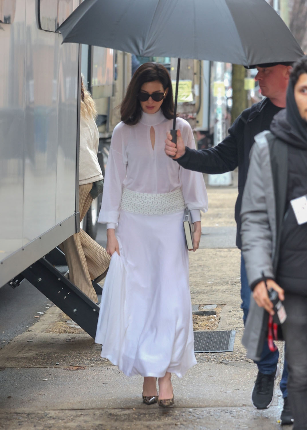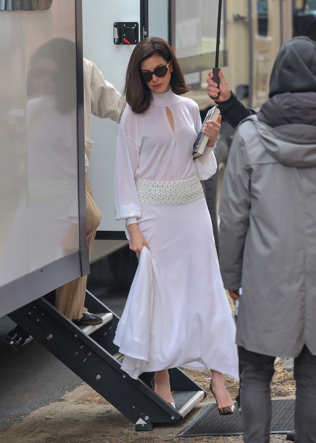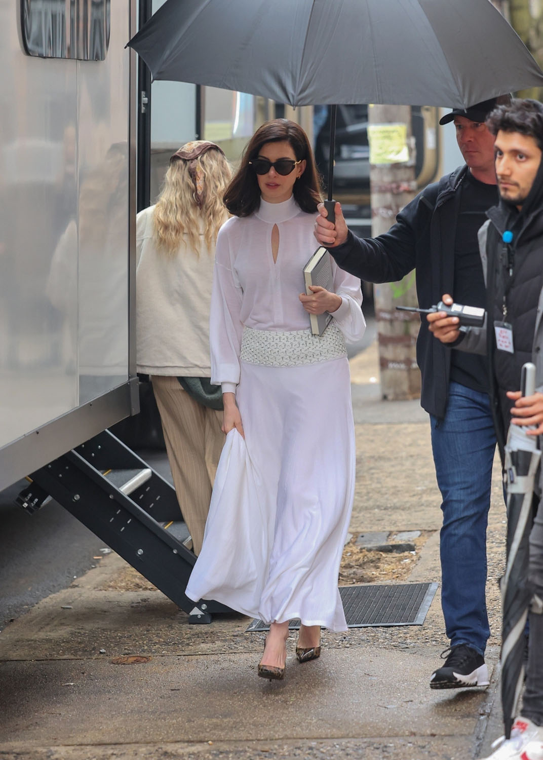 Here Annie is as Verity, presumably in some kind of flashback, like before whatever happens to her happens to her? It’s giving glamourous and elegant…with a heavy dash of enigmatic. Can’t wait to see how this scene plays out on screen, for many reasons, one of them being that I think she’s wearing a wig – so I’m interested in how well done it will be, if indeed it is one. She wore what I think was a wig in some of the scenes in The Idea of You that was gorgeous on her. And, by the way, that won’t be the only thing the two films have in common. Because Michael Showalter, who directed Annie in The Idea of You, is also directing Verity
