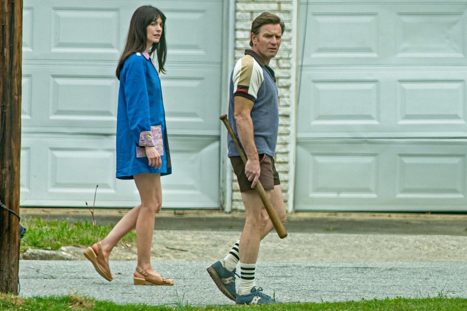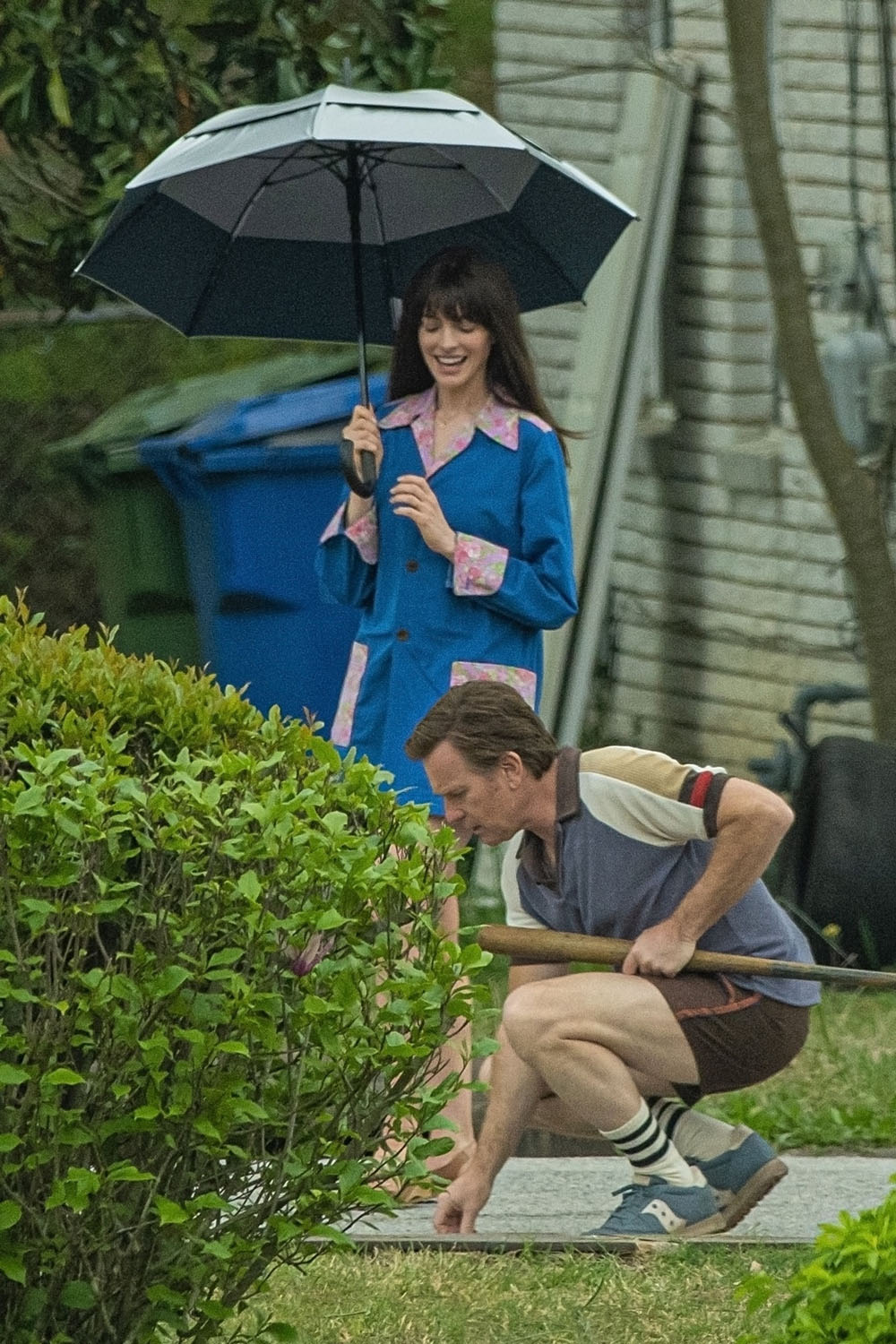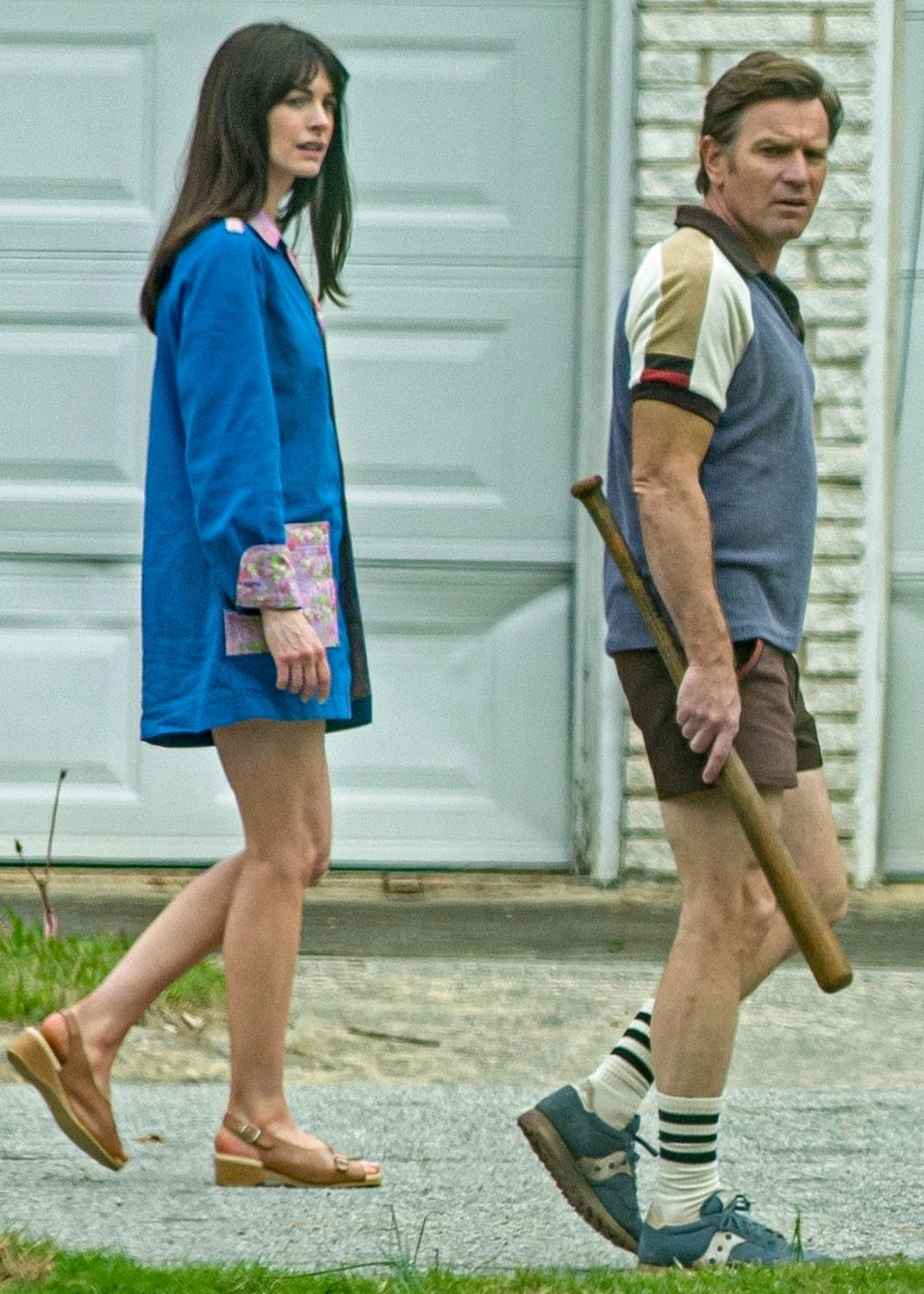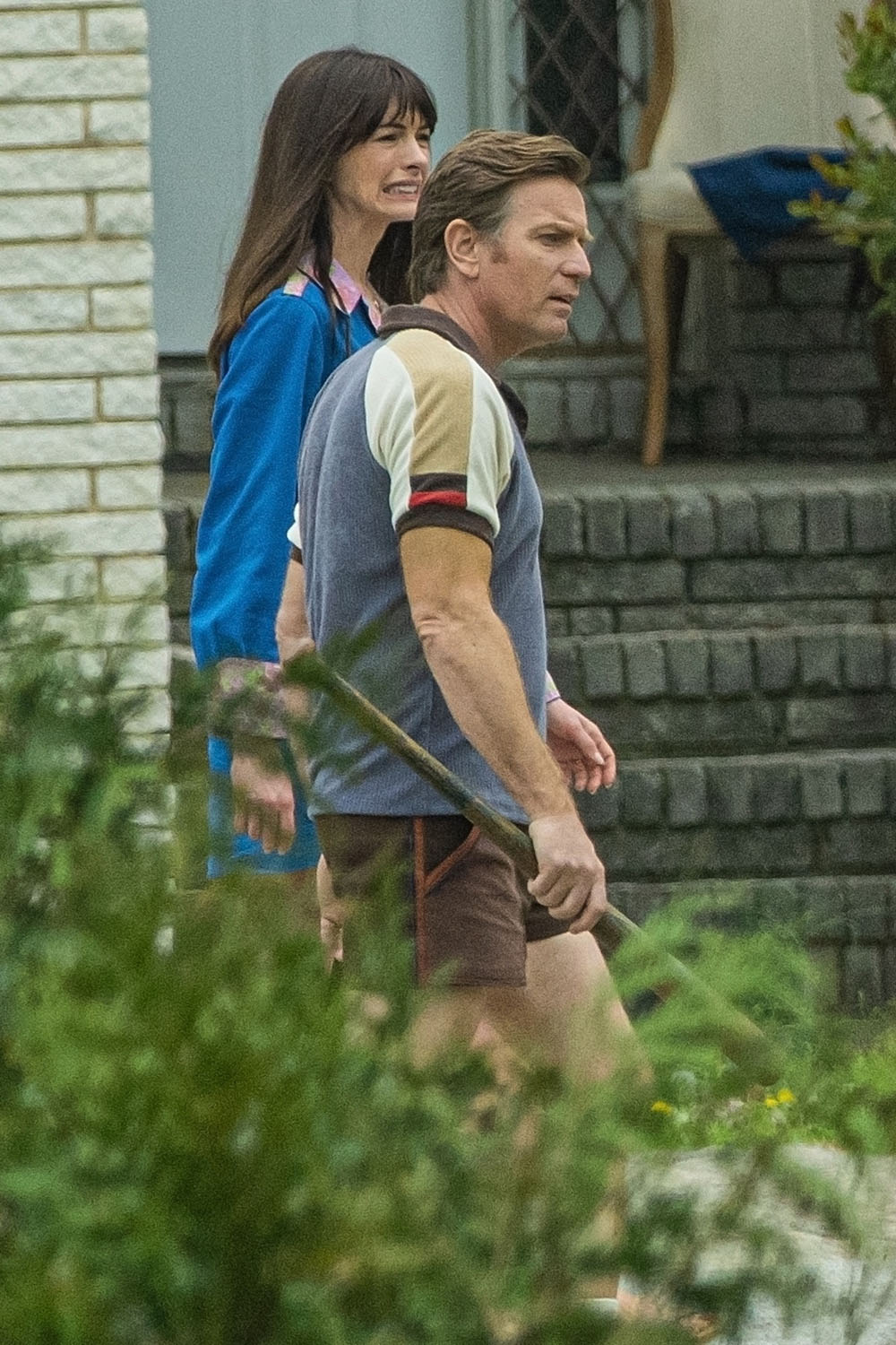 Anne Hathaway and Ewan McGregor were seen in Atlanta yesterday on the set of Flowervale Street.