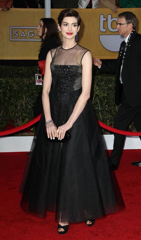 Anne Hathaway’s speeches always start out good. Remember the Globes? And her tribute to Sally Field? That was good. Last night too. Last night she started out strong. She talked about her SAG membership, she expressed her love for her community. And if she had stopped there, we’d be cool. The problem is that she doesn’t stop. Not only does she not stop, she goes on to “my cast” her way onto your Hate List.