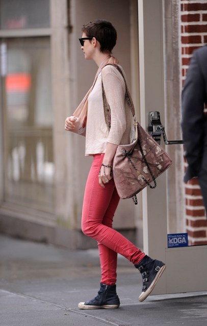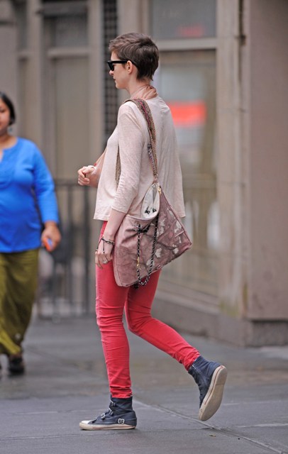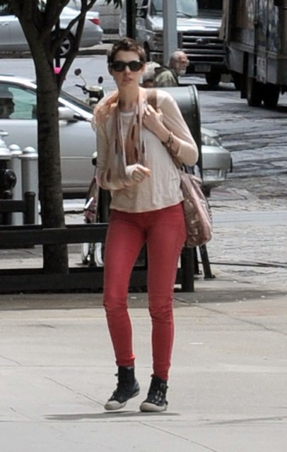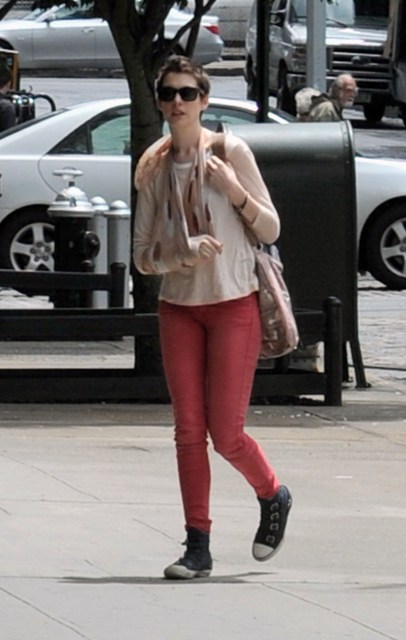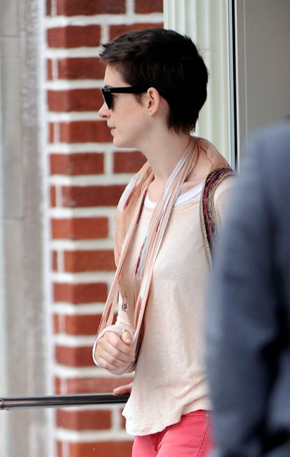 Here she is in New York yesterday. I hope her arm gets better by the time she has to start promoting The Dark Knight Rises. We’re just a month out now. It’s close. And I’m scared. Not scared because I think it’ll suck because there’s no way it will suck. It will be awesome. But it’s not exactly going to be 2 and a half hours of stress-free moviegoing. I go to Christopher Nolan movies prepared to have my head hurt. I might even break out on my face the next day from the anxiety.