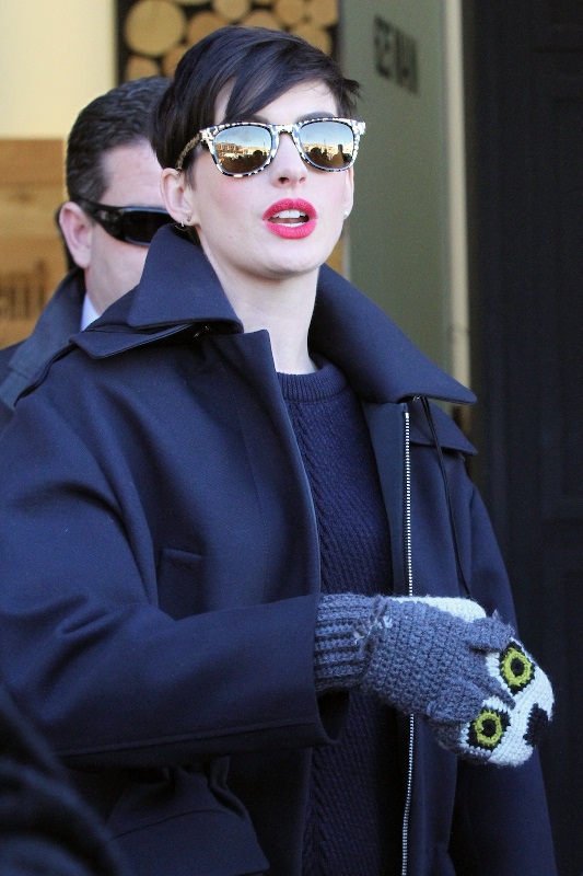 Since last year’s Oscars Anne Hathaway may not have had any blockbuster movies released, but she was hardly off the radar. She got that intense blonde makeover, she shot a Christopher Nolan movie, she faked her own death or whatever that was in Hawaii, and was photographed walking around L.A. with Adam Shulman a LOT (sometimes wearing a ridiculous hat).