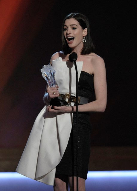 She and Meryl Streep tied last night for Best Actress. Anne looked adorably and appropriately surprised. Meryl didn’t bother to show up. She’ll be at the Globes on Sunday, she probably didn’t feel like leaving New York two days early for yet another awards show. Amazing.