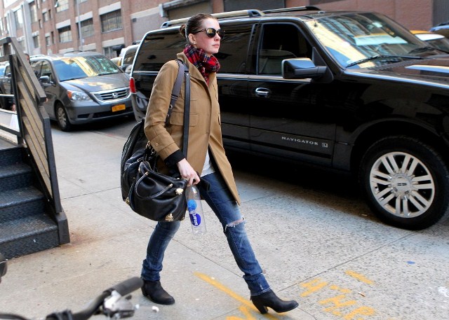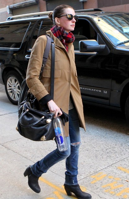 Right now though I’m eyeing Anne Hathaway’s lezzie boots here, in New York, as she’s leaving the gym. They look great with her jeans. The heel might be too high; I prefer my lezzie boots a little lower to the ground. Still...these aren’t a bad option at all.