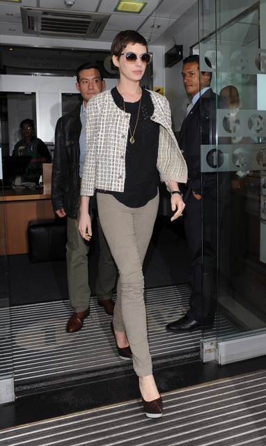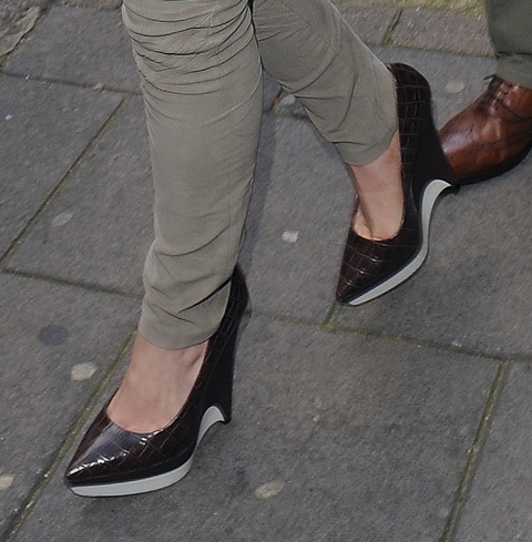 The sunglasses SO MUCH. The wedges SO MUCH. They look like Stella McCartney to me. Similar to the pump everyone was wearing a few months ago.