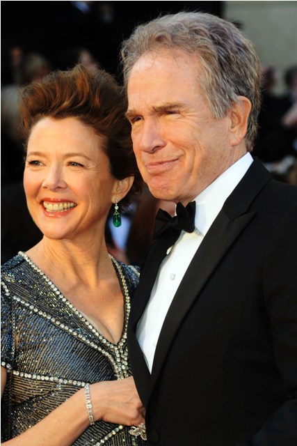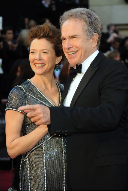 Me, I think Warren waits for her outside the ladies room, tells her to pick up her socks, and that they’re going to put a smile on the faces of everyone in the Governor’s ball in one hour or less, they sweep through and everyone comments on what a handsome couple they are. (Lainey: they were photographed dancing with Jeff Bridges and his wife.)
