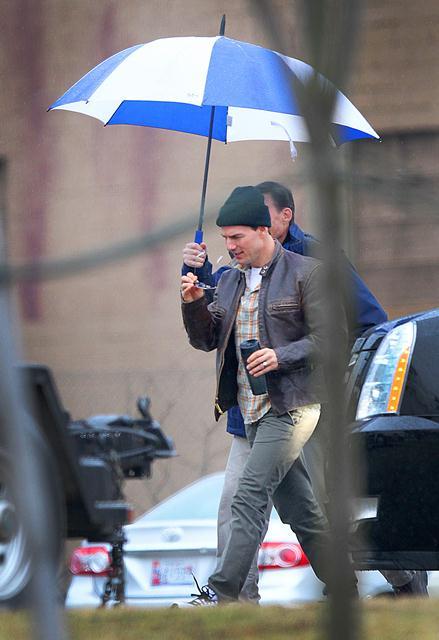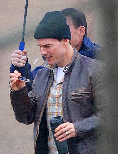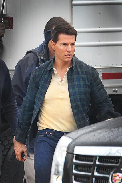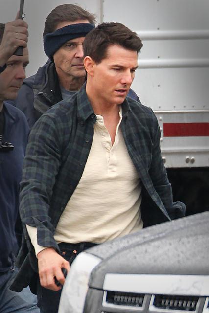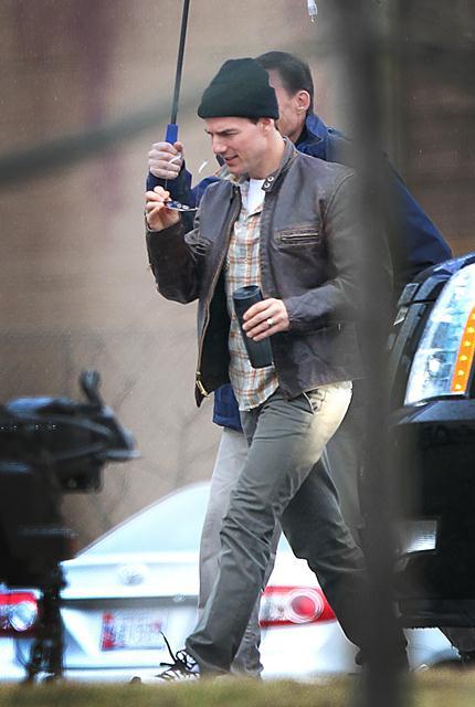Anyway, here’s Tom Cruise in Pittsburgh yesterday continuing to shoot Lee Childs’s One Shot. His wife Katie Holmes meanwhile is in New York, seen this morning with a red bag that you know she wanted to match with her shoes, continuing to baffle with her obvious and, frankly, amateur style.
