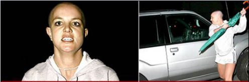 Britney on the other hand actually believes she’s funny as sh-t. And that her witty “I’m trying to be subtle” messages through the pappies constitute advanced comedy. Every other day these days we are treated to yet another embarrassing attempt at “irony” and sarcastic wordplay as Britney continues to communicate through the band of merry photographers assigned to her beat, eager to grab another golden shot of her bald crotch.
