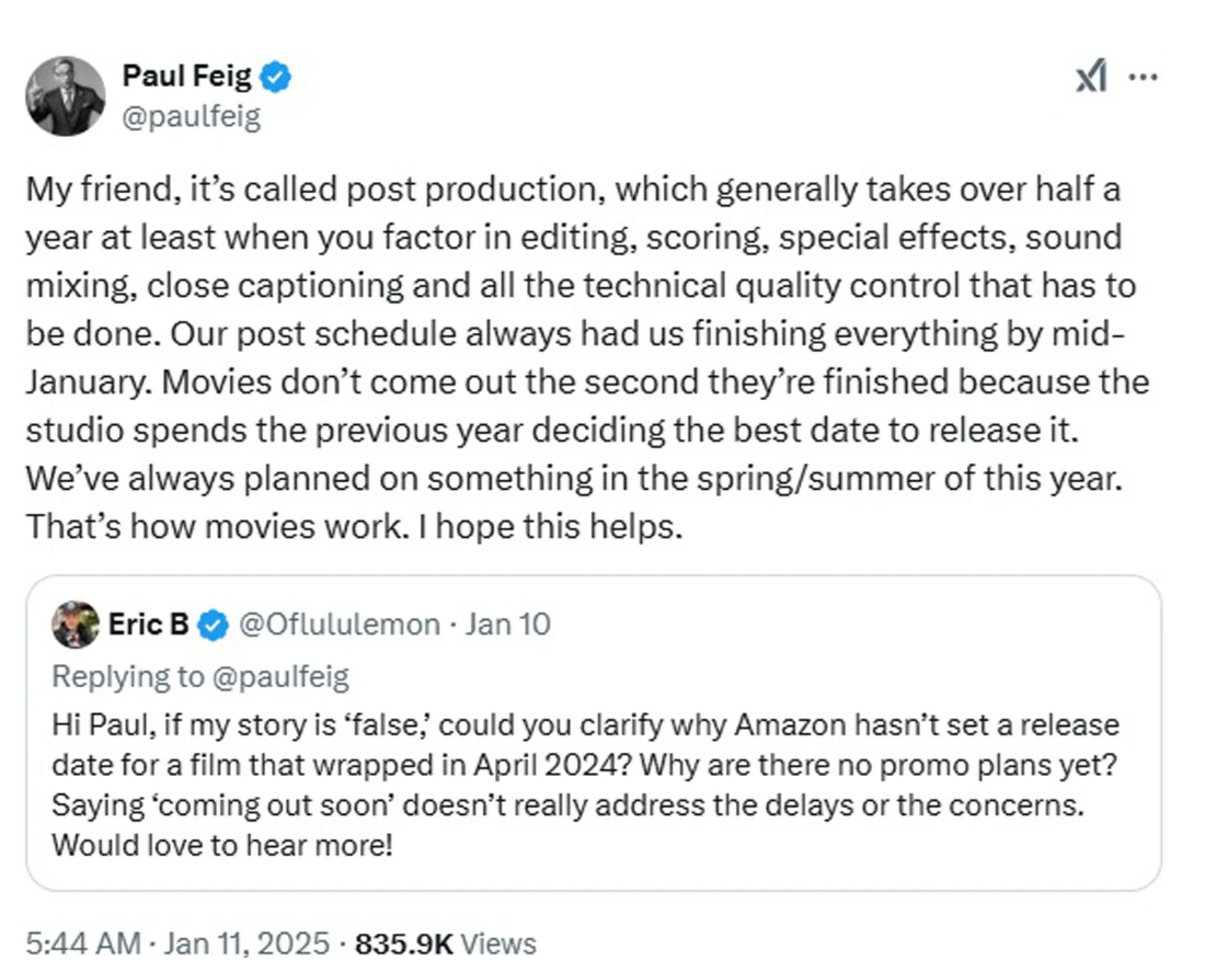 — Paul Feig (@paulfeig) January 11, 2025