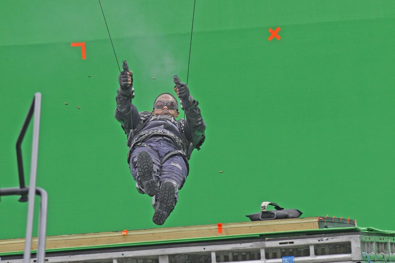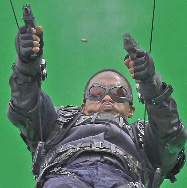 Here's Mackie in costume on the CA2 set yesterday. He plays the Falcon. I think I remember Sarah from Cinesnark telling me he's a good guy. Great. This means he'll be back in all the sequels, right? Like Rhodey to Tony Stark? Errrmmm...what if the "sidekick" is way more interesting than the main dude? Because I'm pretty sure I'll come out of this movie thinking there wasn't enough Falcon. It's decided then. Give Falcon a spinoff.