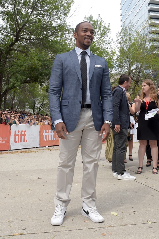 When you're at the early gala, you don't have to go full tux. I like what Anthony Mackie is doing here. And that when he transitions into the party scene he slides right into almost casual.