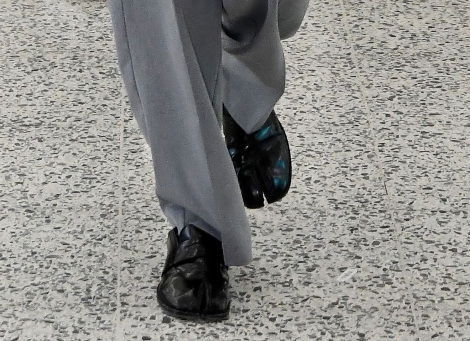 That said, this travel fit isn’t exactly a sweatsuit. I love this cropped sleeveless turtleneck she’s thrown on over the sheer white tank. Also those trousers are deceptively relaxed because while they look comfortable enough to sleep in, they are actually tailored in good quality material. And on her feet, those f-cking Margielas. I have never been able to get with the signature Margiela toe but admittedly the way she’s wearing them here is not offensive.
