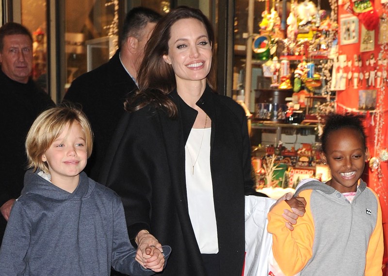 Have you had a chance to read the Jolie issue of Vanity Fair yet? There’s a really good detail in there about how she interacts with her kids. So at one point the Jolie and Brad and all the kids are hanging out in their hotel suite. Brad’s watching the World Cup or something. And Miss Z comes up to Angelina and whispers into her ear. They laugh together. Later on, Angelina tells the writer that Z caught Maddox and his girlfriend kissing in the other room. It’s pretty f-cking cute. The Jolie is mother to a horny teenager right now.