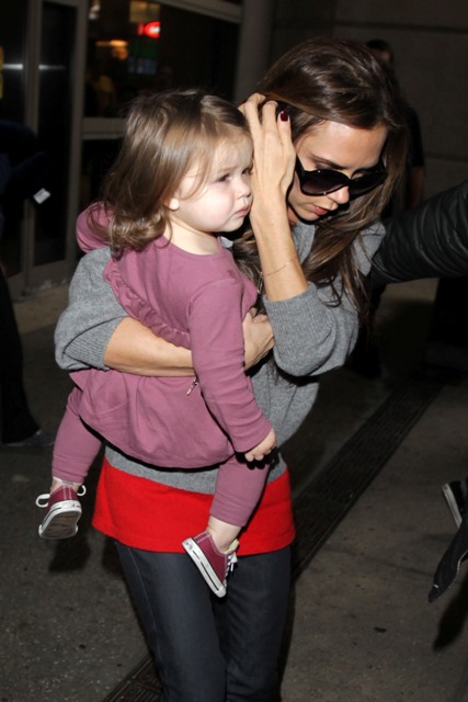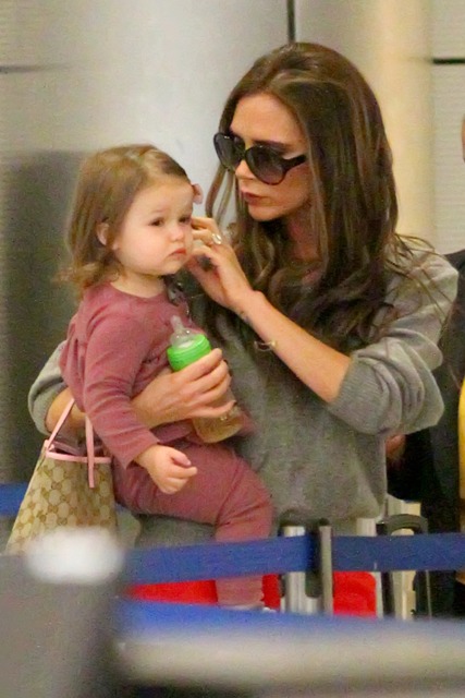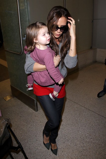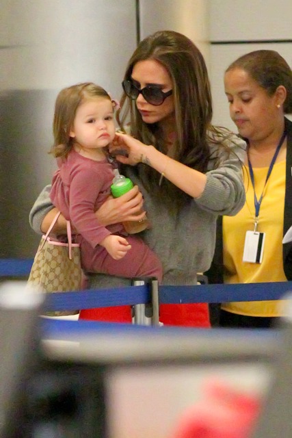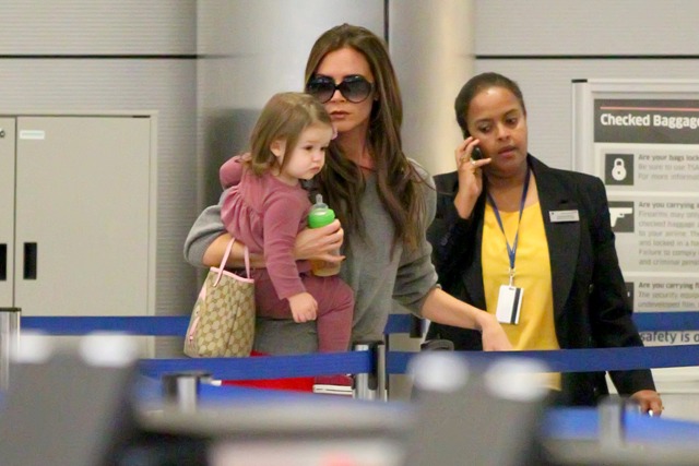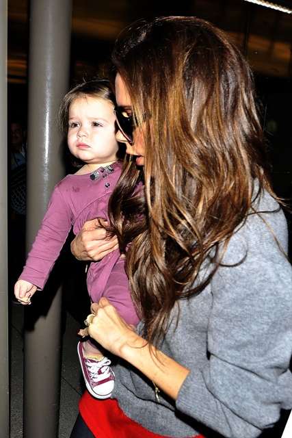 As for Victoria, I've not seen any shots of her at the game. She was however papped at LAX with H7 after spending nearly two weeks in London. The boys were with her at the start of the trip, and then she sent them home, back to school, and of course to support dad on the pitch. Posh was supposedly there to attend to fashion business and look for a new home. Now that Becks has declared that he's leaving the Galaxy, they're speculating that the family is moving back to England so he can get a job with a European squad, though he said recently that he can't see himself playing again in the English Premiere league as he's already been part of what he considers the best, Manchester United. In that same conversation though he also expressed interest in returning home, so that his kids can be closer to their grandparents. And the travel would certainly be easier on Victoria. Now that she's a proper designer, it would make sense that she'd want to be permanently based in the heart of the London fashion scene. After all, the people she considers her peers now, none of them live in LA, with the exception of Hedi Slimane who, judging by what he sent down the runway for his first collection for YSL, might want to consider a change in residence too.