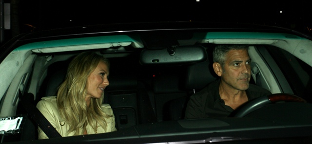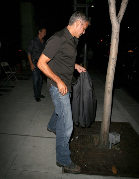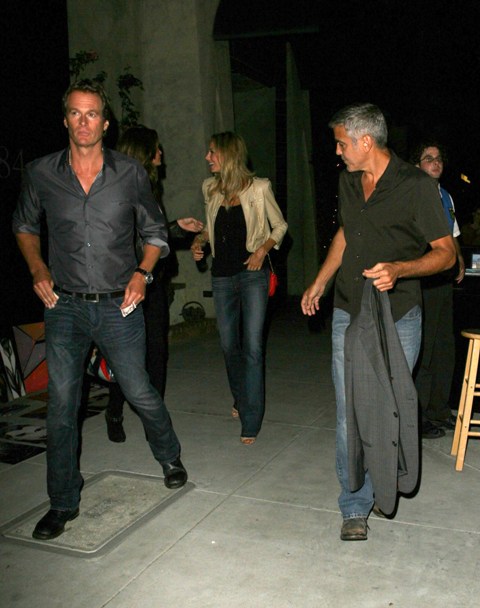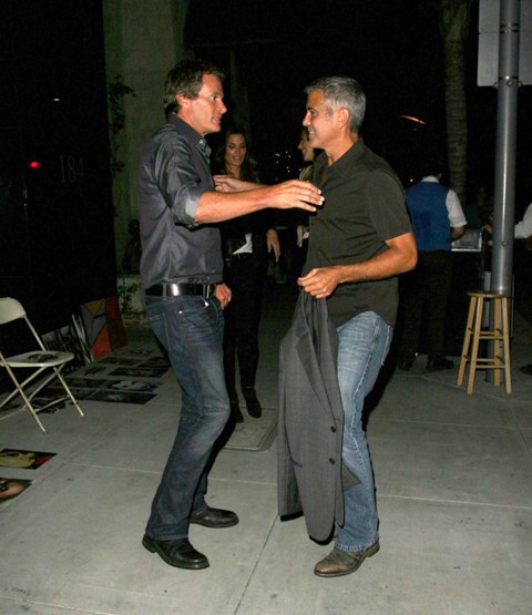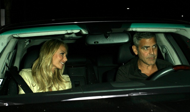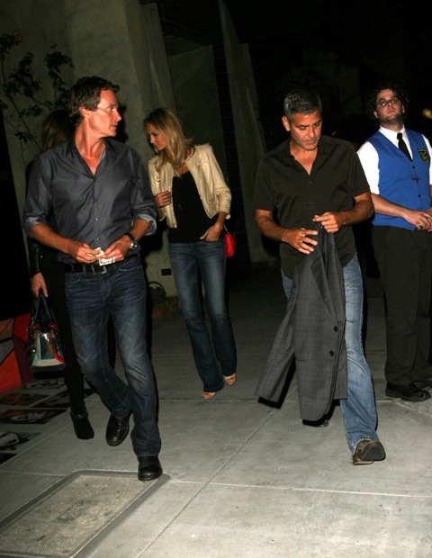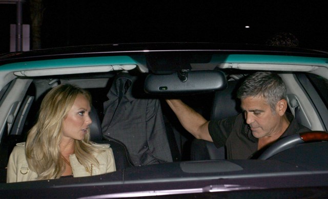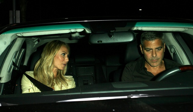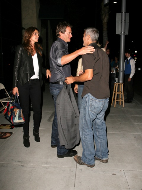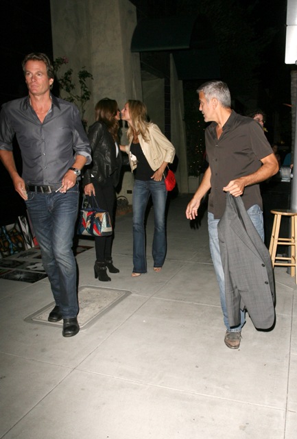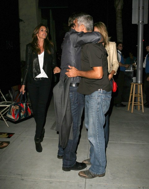 Here’s George with Stacy after dinner with Rande Gerber and Cindy Crawford last night in LA. Total Photo Assumption here but they look like they’re saying goodbye like for a while. Como soon?