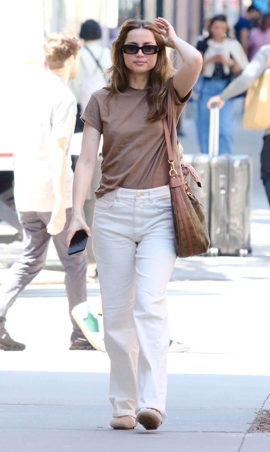 As just mentioned in the previous post about Tom Cruise, he was busy promoting his movie all last week in Japan and Korea and also this weekend in London. Ana de Armas, however, evidently still has helicopter privileges when he’s not with her because the chopper took her to Heathrow on Saturday and now she’s in New York. She was seen going for a walk on her own yesterday, presumably she’s there because Ballerina promotion begins this week.