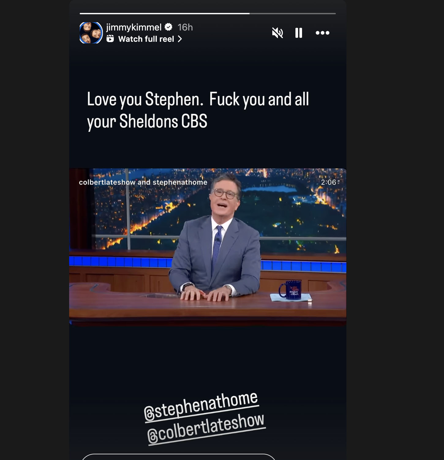 That brings me to Jimmy Kimmel’s tweet about “f-ck your Sheldons.” There are many “Sheldons” – but is that the problem? I don’t think franchises are the main issue with the current network system; those shows are a great way to keep the lights on. The Sheldons and the CSIs have crew, writers, drivers, craft services etc. and create just as many jobs as The Late Show. As Sarah wrote this morning, Paramount is getting rid of its late night offering and it has a lot to do with politics and stakeholders, not competition from other TV shows or budget.