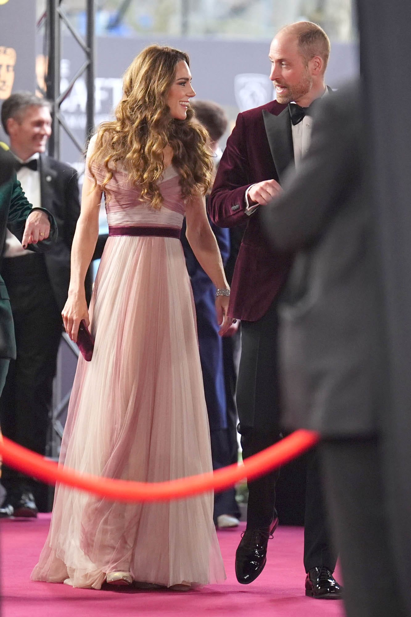 Prince William and Kate were in a couple’s outfit last night at the BAFTAs. He showed up in an oxblood velvet jacket while she was in a pink Gucci (that she’s worn before in 2019) with a velvet belt and clutch to match her husband. At one point William revealed that Kate had seen Hamnet the night before and cried her eyes out – standard reaction with this film – but that he’d yet to watch it because "I need to be in quite a calm state and I am not at the moment."