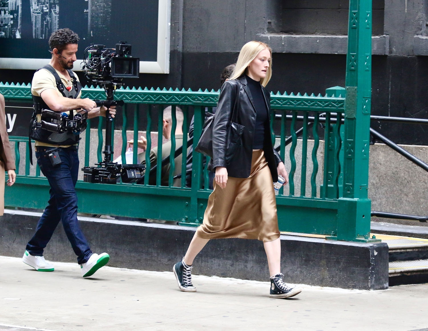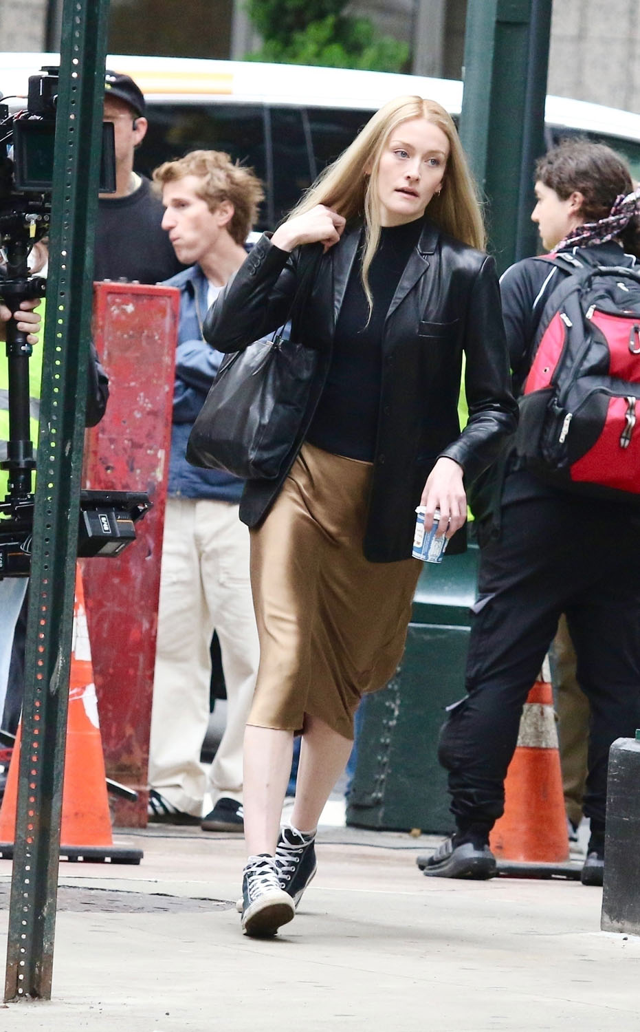 I like these more. The converse and the silk skirt, the leather blazer, it’s definitely giving Calvin Klein of the era. What’s still missing, and of course it’s hard to judge just from these photos so let’s hope that they’ll bring more of it when we see the final product, is Carolyn’s athletic sometimes even tomboy energy. There was a femininity to her, definitely, but it wasn’t delicate, she wasn’t uber-girly. And Sarah’s physicality here reads rather feminine. There’s also the intangible aspects of Carolyn’s physicality. We know now that she was struggling under all the pressure and the speculation and the intense attention. But on the outside, at the time, she also appeared aloof. That was part of her magic and mystery, her expressions were often so inscrutable, it only added to the fascination.