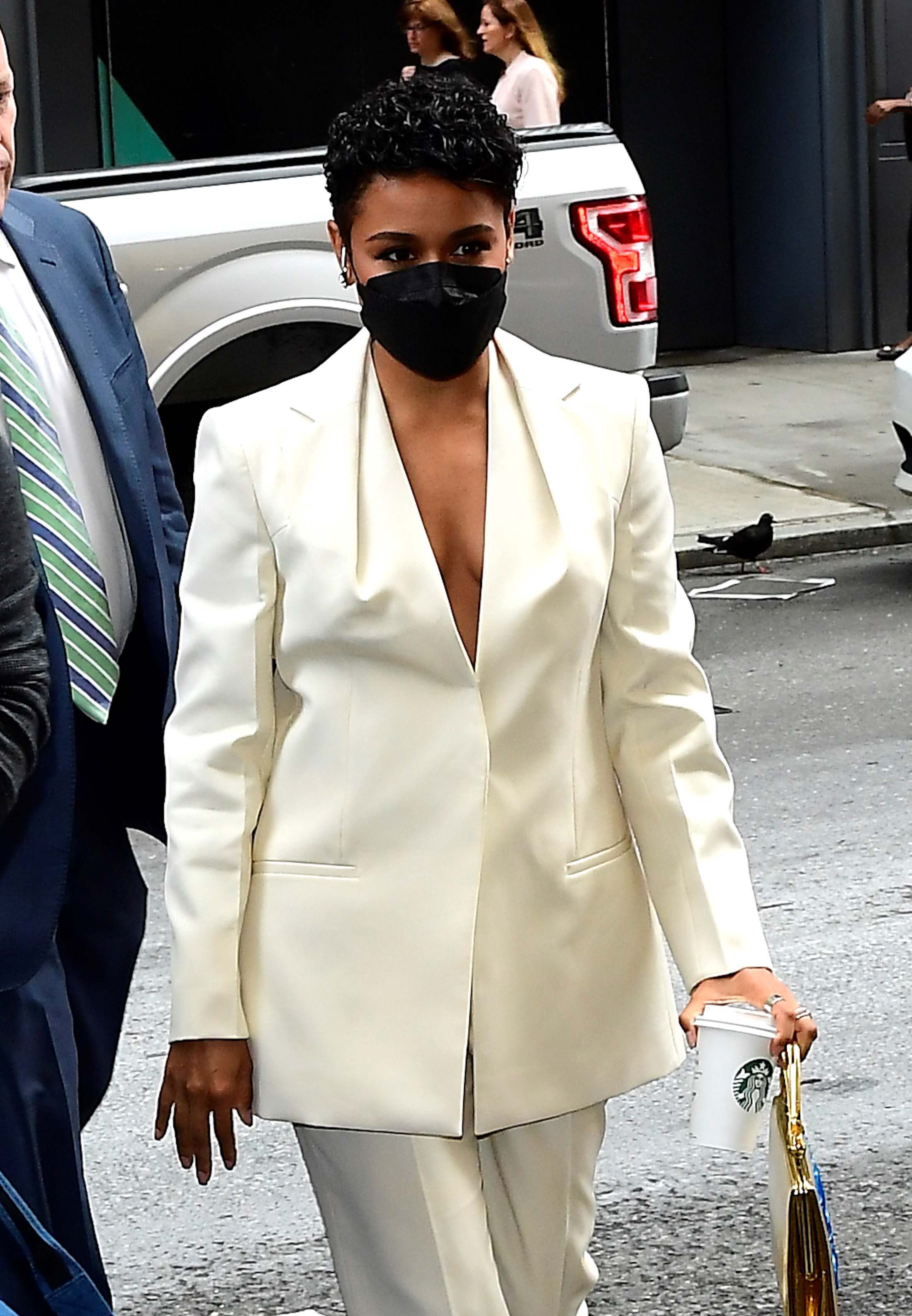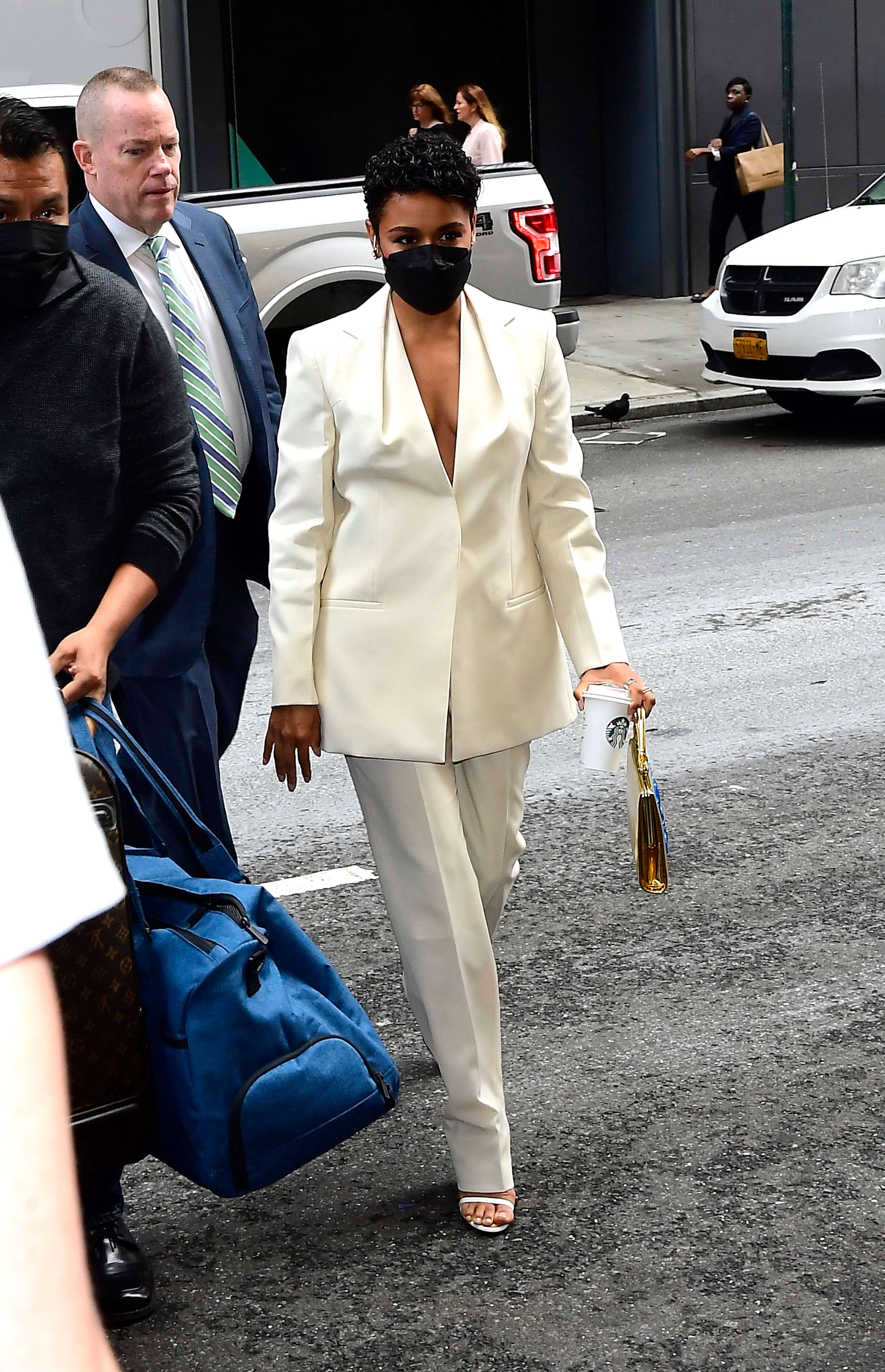 Earlier this week she was in a glorious white Givenchy suit for Tony Awards promotion.