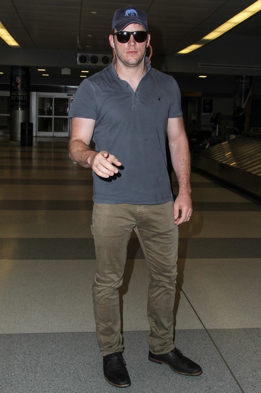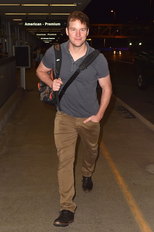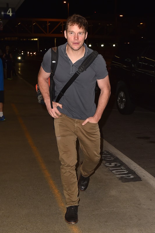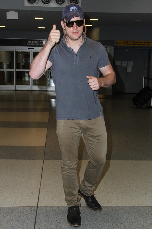 Chris Pratt was photographed at LAX yesterday on his way to New York. He’s hosting the season premiere of Saturday Night Live this weekend, an understandable choice. Pratt has had an amazing summer – Guardians Of The Galaxy has turned him into a major star, and he’s worn it well. He’s been humble and gracious and kind, so kind, and through it all, he’s managed to be funny. People are on his side. You want Chris Pratt to succeed. He’s one of those rare celebrities – much like Channing Tatum, actually – that everyone just likes.