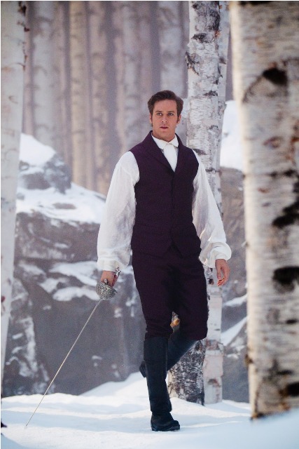 Armie plays the Prince in the Snow White movie starring Lily Collins and Julia Roberts. Promotional photos of the cast in costume were released last week. I wrote to Sarah from Cinesnark at the time - am I supposed to believe that Armie Hammer falls in love with Lily Collins? Really??? Sarah was like, I know, right? Lily Collins presents very young and Armie Hammer, even though he presents more mature - he seems 30 doesn't he? - is actually just 25. Same year as Lindsay Lohan! In fact, he's a month younger!