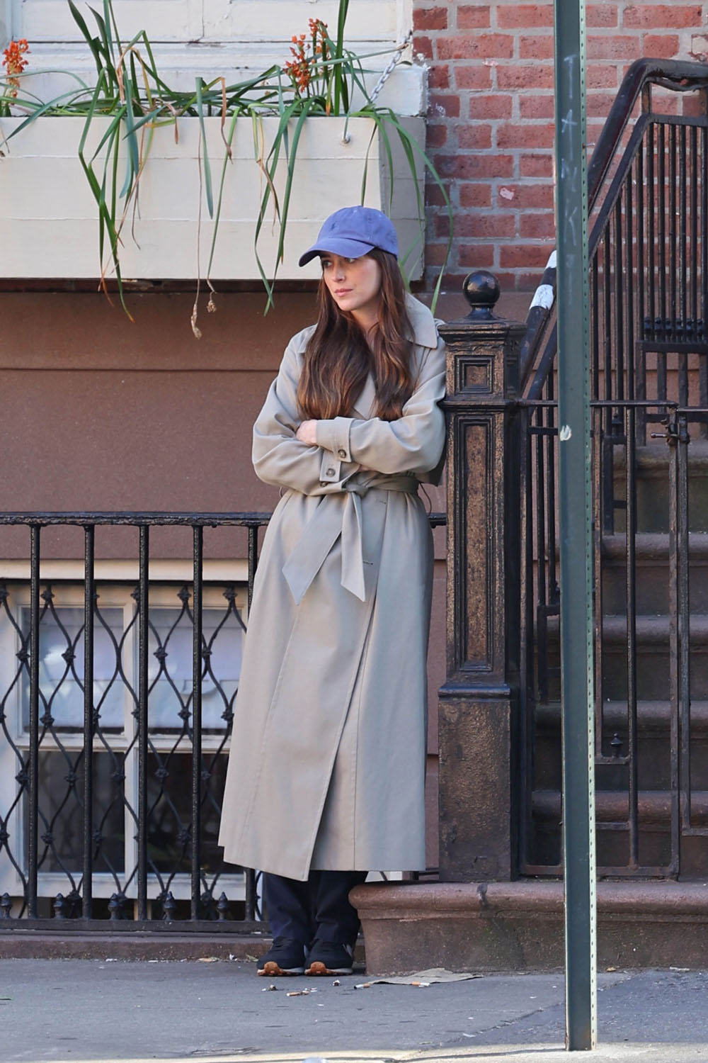 Yesterday, Lainey posted some photos of Dakota Johnson on set and then I was asked about other photos of her on set in a blue baseball cap.