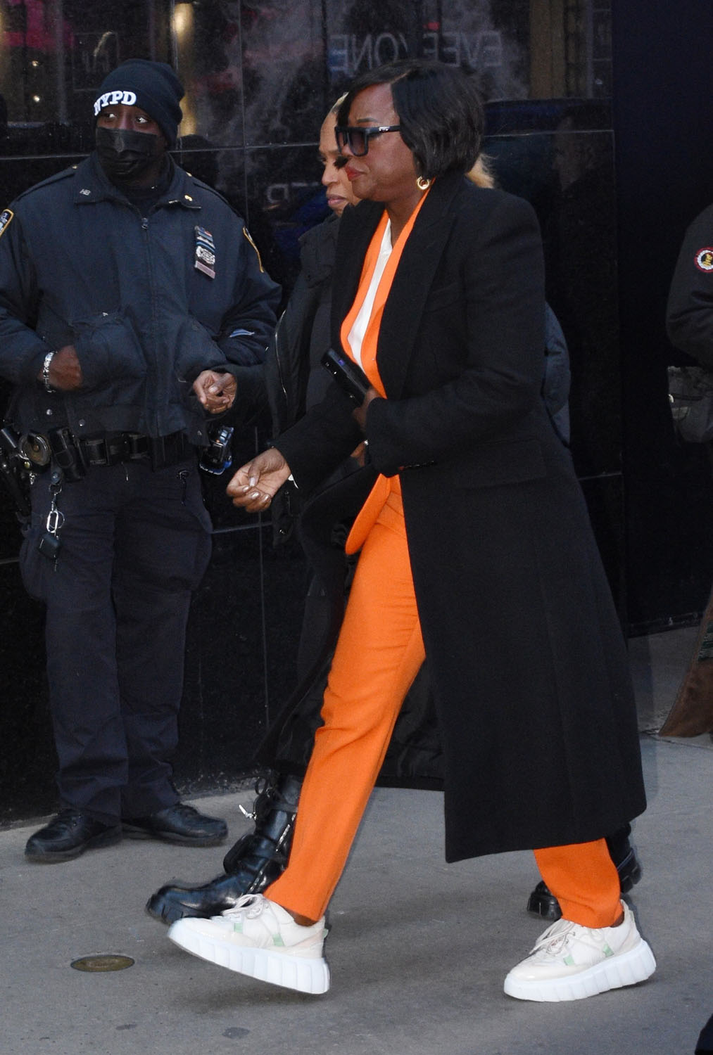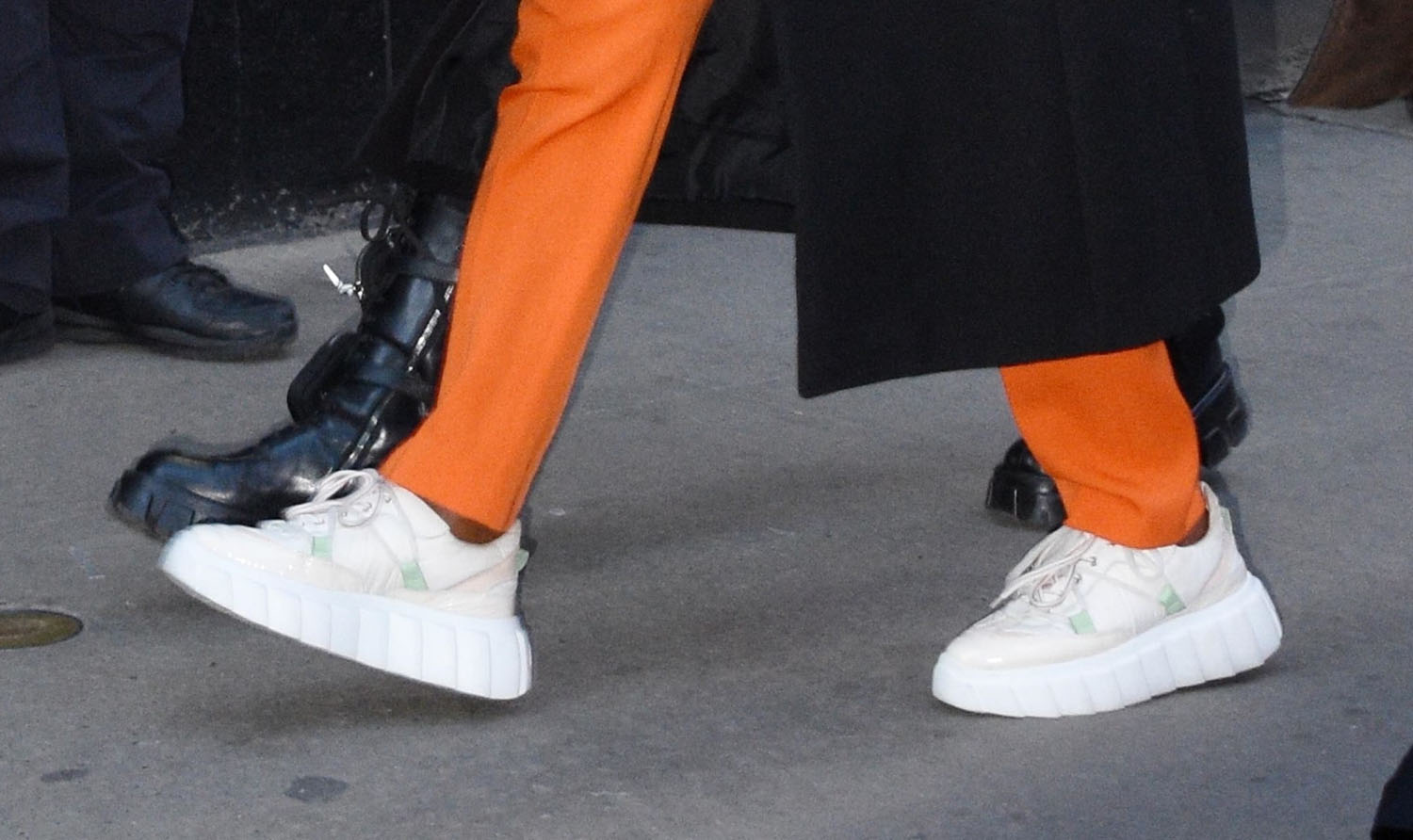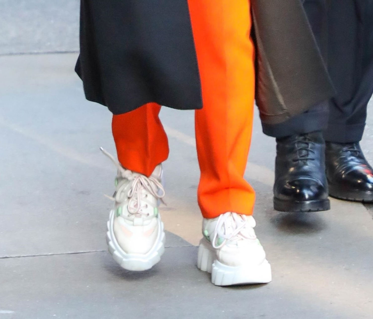 Next up is a pair of fresh kicks that Viola Davis wore on Good Morning America to promote Air. Now she may be in a Nike movie but these are not Nike shoes and I took a guess that she wouldn’t wear a direct sneaker competitor (like Reebok or Puma) so I started looking at luxury sneakers like Hogan (which she has worn before), Stella McCartney, and Chloe. She is wearing AGL, an Italian, family-owned brand that focuses on flats, oxfords and chunky sneakers in a way that isn’t trendy like platform sneakers can sometimes be. The exact pair is here. (Thanks Simone!)