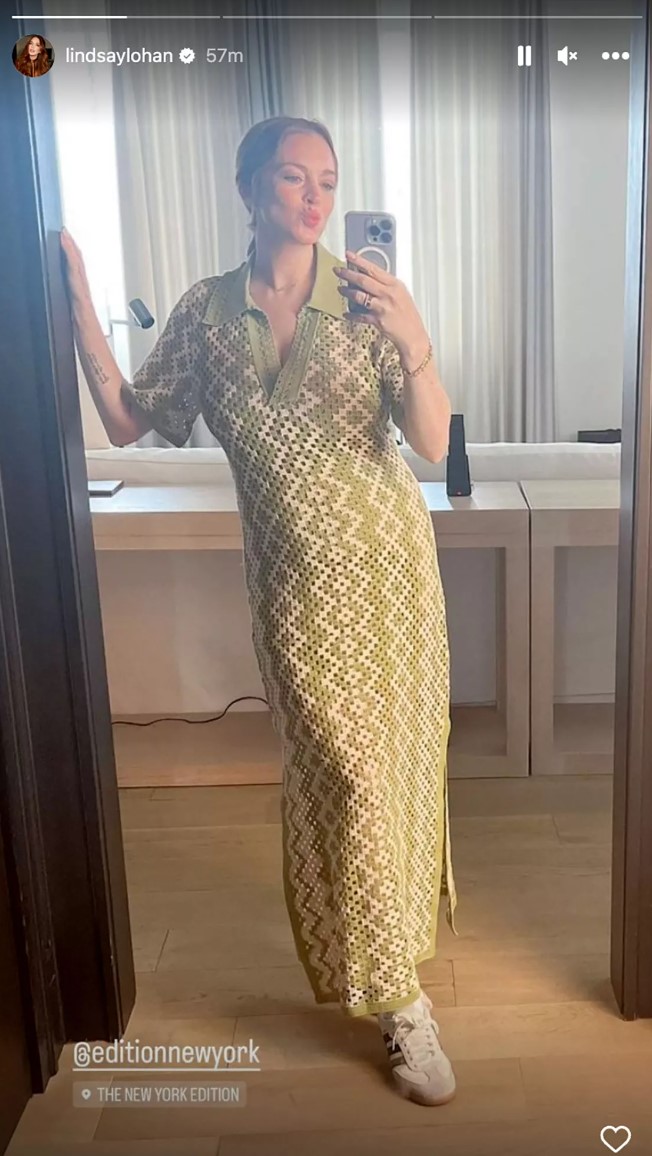 Lindsay Lohan has had a very low-key pregnancy, not posting on her Instagram grid since the announcement. This makes me very happy for her – she is opting out of the attention economy. She did post a story in a cute crochet green dress and I tracked it down: it’s Sandro and I’m seriously considering it.