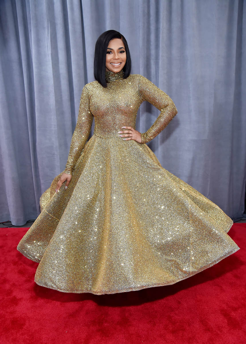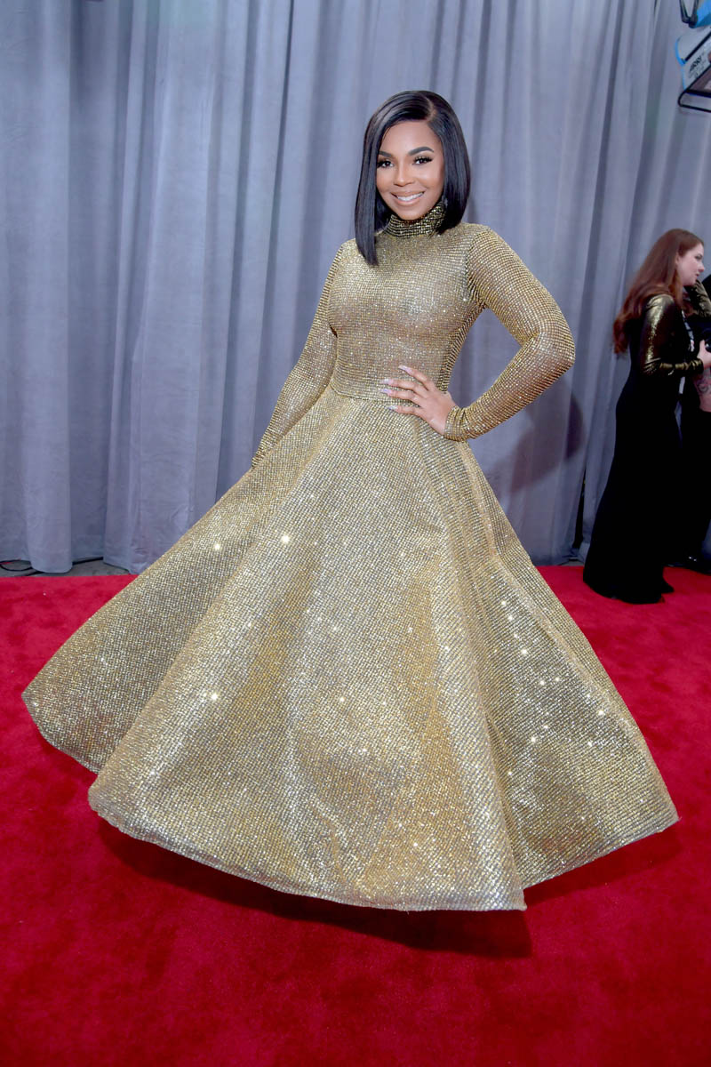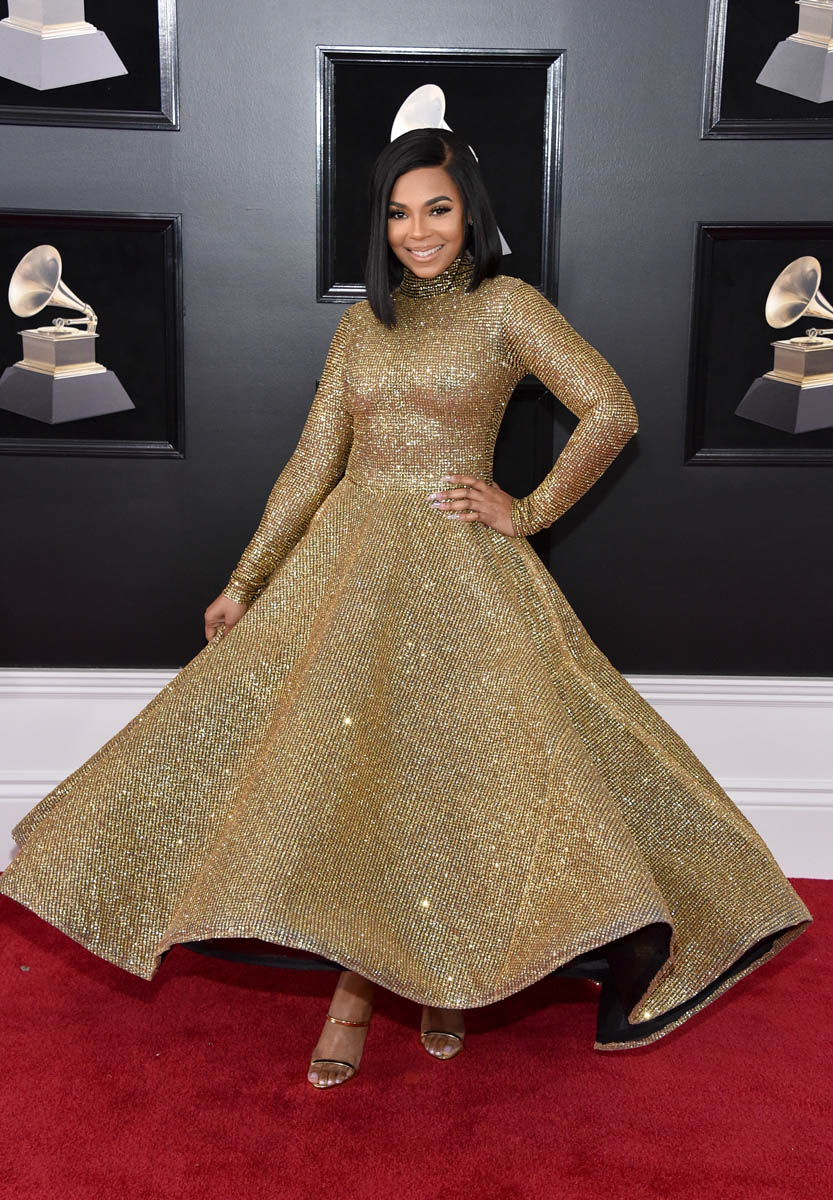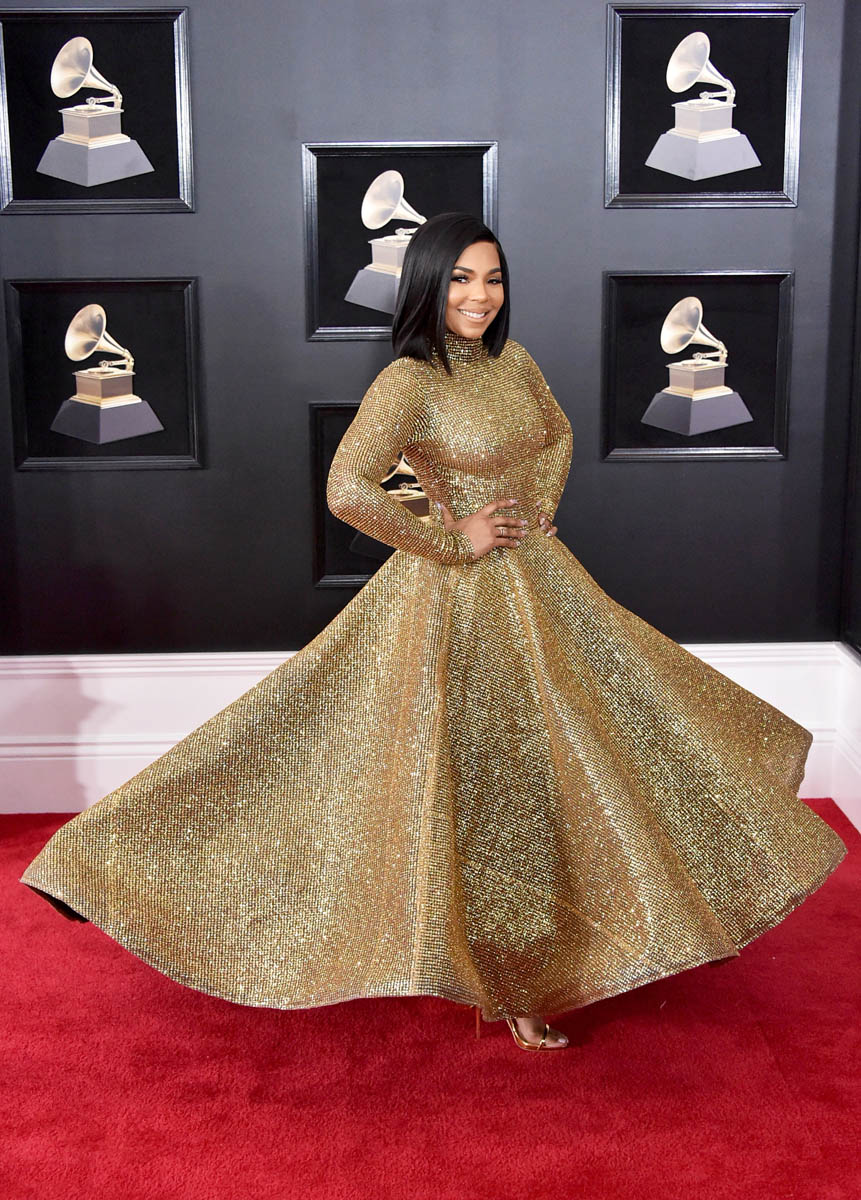 Right? I mean it’s not exactly shaped like a Grammy, but Ashanti’s dress feels inspired by the actual Grammy statue, doesn’t it?