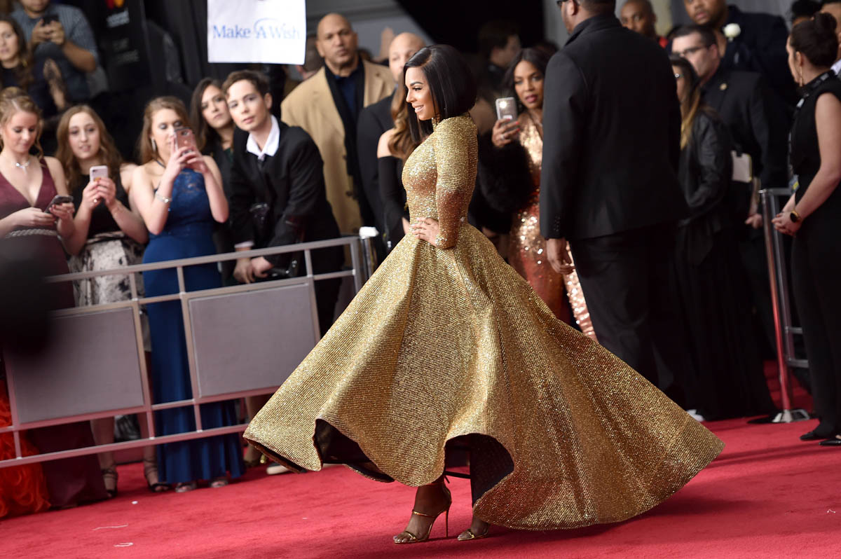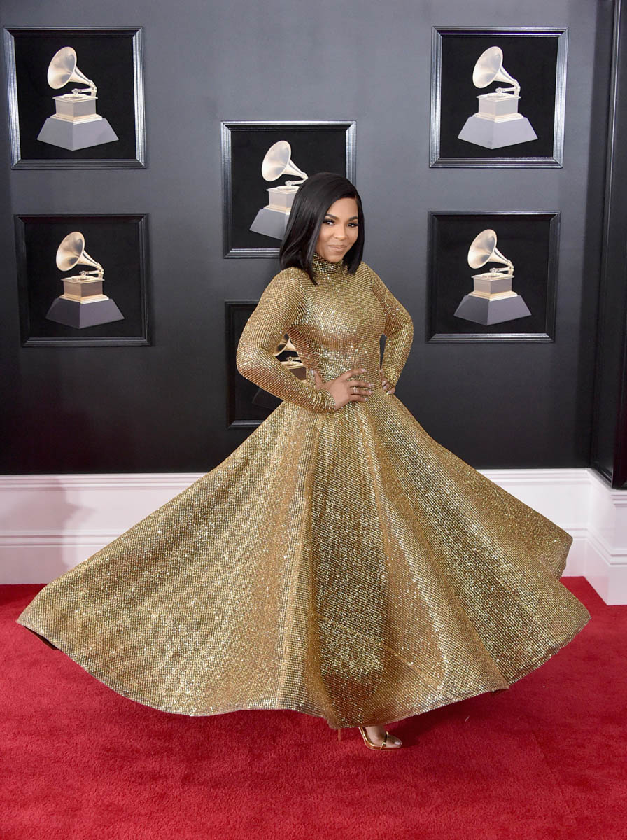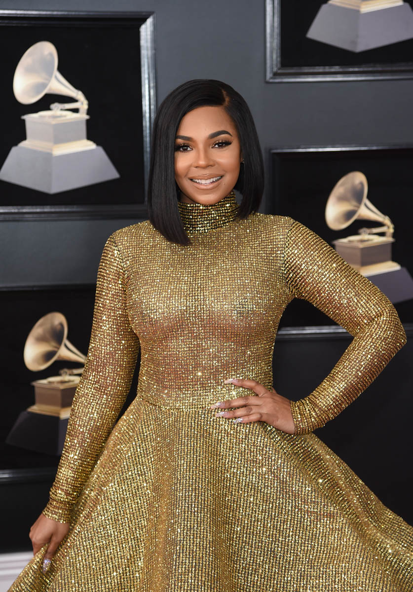 Right? I mean it’s not exactly shaped like a Grammy, but Ashanti’s dress feels inspired by the actual Grammy statue, doesn’t it?