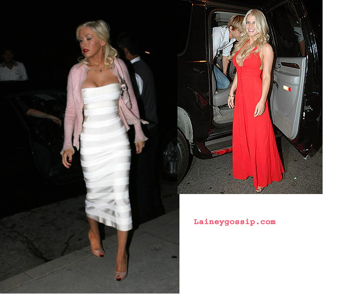 Two ladies out for dinner - both dressed to kill, both dressed to impress, and who impressed the most? DEFINITELY Christina, non? Sure I"m pro-love for Simpson of late, but a floor length gown for no special reason, for no red carpet? Especially when your hairgay didn"t feel the need to go beyond the usual small jeans, small shirt uniform? A bit much, I think. A lot much, in fact. Christina on the other hand…total gorgessity. It"s dramatic, yes. Dramatic but not stupid …subtle but significant difference, savvy? And while we"re at it - where is this new killer style coming from? Girl has not looked assy in forever. Why is it that we find improvement so shocking in showbiz? Photos from https://inksmellsbad.livejournal.com/6759.html