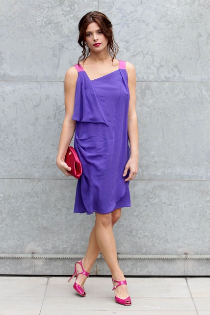 If you dare to wear colour, at least wear it without WRINKLES! She can’t afford to send her clothes down to be pressed? How did Ashley Greene, who is NOT a non-TwiHard household name, how did Ashley Greene decide that she’d arrive to Armani yelling sartorially at the top of her lungs in purple and pink? When did she earn that right?