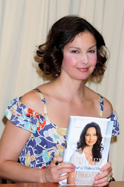 Ashley Judd was out promoting her memoir at Barnes & Noble in New York yesterday and, like Nicole Kidman and Uma Thurman before her (examples here and here) had more people talking about her makeup than they did her book which, I mean, she is really, really taking it to her family, specifically her mother, but is she also as candid about her own, um, mercurial moods?