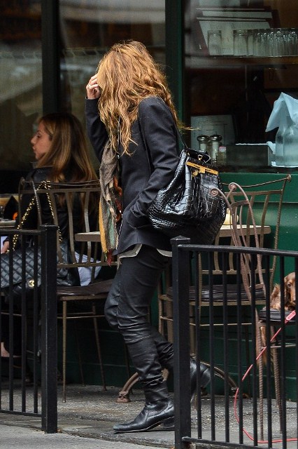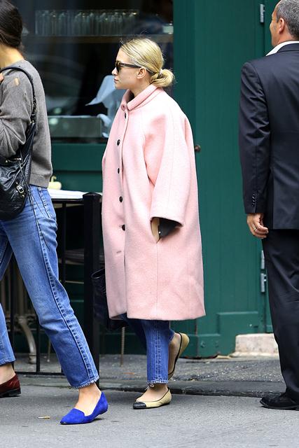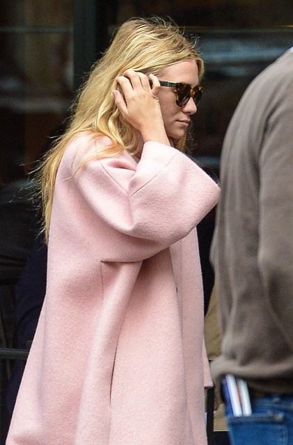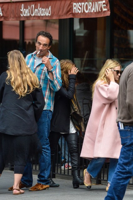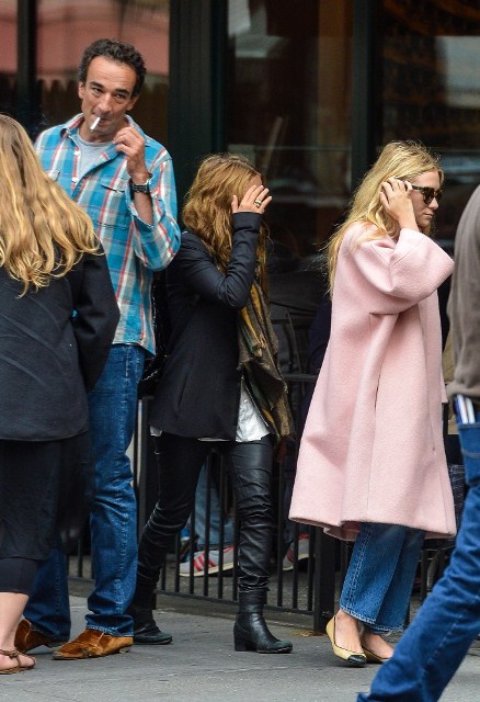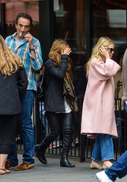 Mary Kate Olsen is dating Olivier Sarkozy. They’ve reportedly moved in together. On Saturday they had brunch with her sister Ashley who, at first glance, looks like she has freakishly small arms in that coat. (Her hands are tucked into the pockets and it’s a weird optical illusion.)