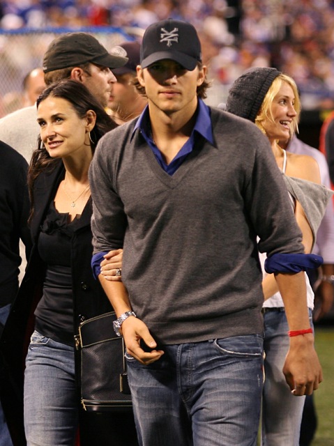 Here are Ashton and Demi on the sidelines at the Giants game Sunday night…still together and still wanting to be.