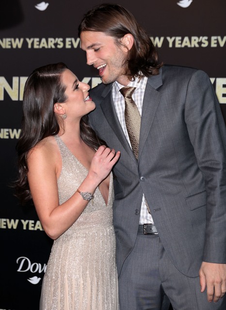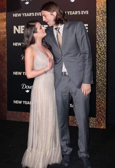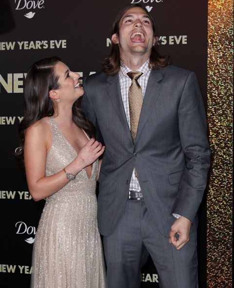 Ashton Kutcher attended his first movie premiere since being publicly exposed as an unfaithful moron of a husband, now single. Here’s Ashton last night on the carpet with Lea Michele for New Year’s Eve. He and Lea are paired together in the movie. So it was her duty to pose with him like they’re friends, like they enjoy each other’s company. I know Lea is annoying and that we love to hate her. But my choice here is to assume that this is a professional obligation for her, a subtle order by the studio, if you will, to be nice to him so that we can begin the process of healing his reputation, and then his career.