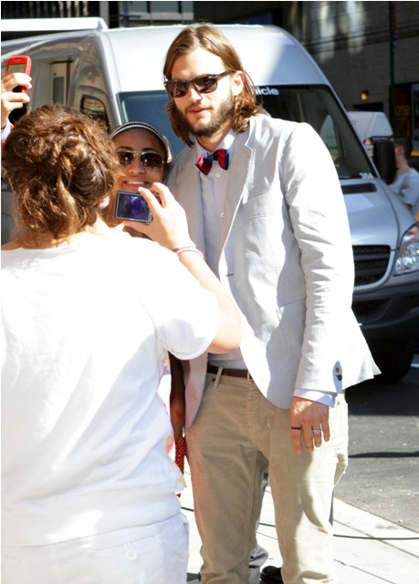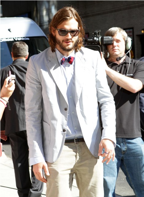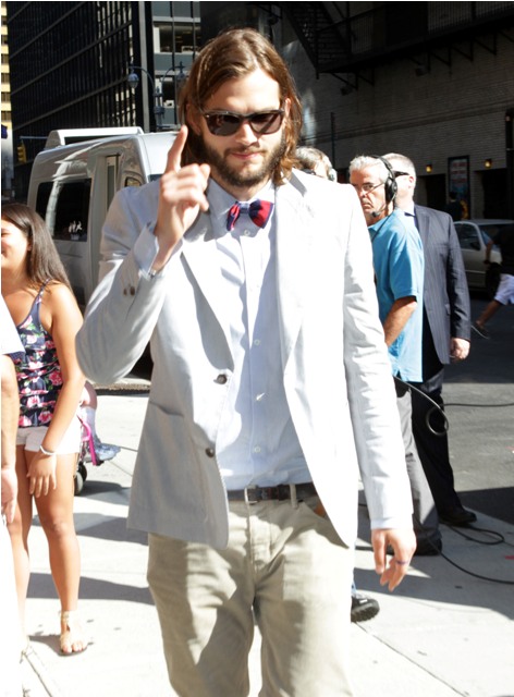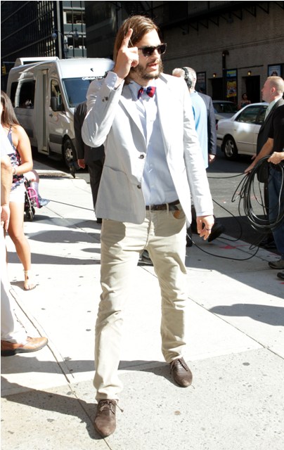 This is Ashton Kutcher arriving at Letterman presumably to promote his new starring role on Two and a Half Men. When Ashton obscures his looks, and he’s a very good looking man, there are very few kind things I can find to say about him. Look at him. He looks like a smug douche. With his try to be cheeky bowtie and his try to be I just grabbed these wrinkled pants pants and his I’m so much smarter and techier than you expression...He. Is. A. Douche. And he acts like a douche.