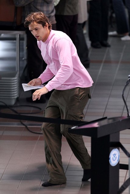 This is Ashton in pink at LAX today working on Valentine’s Day. How many people are in this movie????? At this rate every scene will be 20 seconds long.