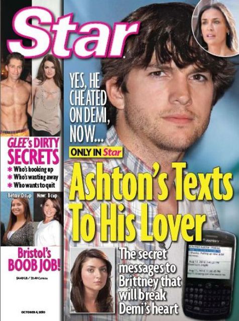 Now Brittney is opening up her Blackberry and earning some cash money while she’s at it. I hear she shopped her sh-t around to several publications before landing with Star. Totally skeevy but ...given the brazen aggression with which Star is pursuing the story, and their cavalier attitude to Ashton’s empty legal threats, where I was initially dismissive about all of it, it’s becoming increasingly hard to remain skeptical. I guess it could explain, as many of you have posited, why Demi keeps taking her clothes off on Twitter and has been extra “hubby” loving it with her tweets.