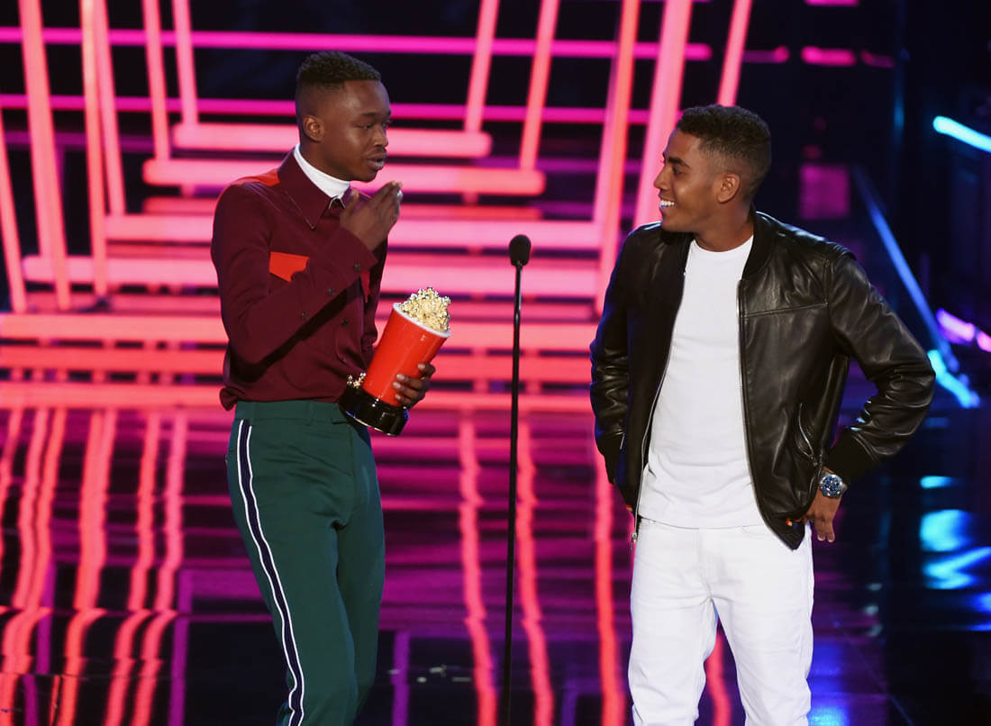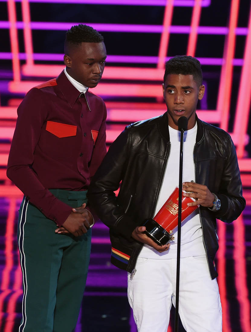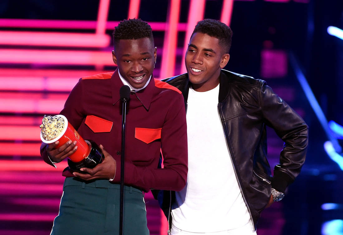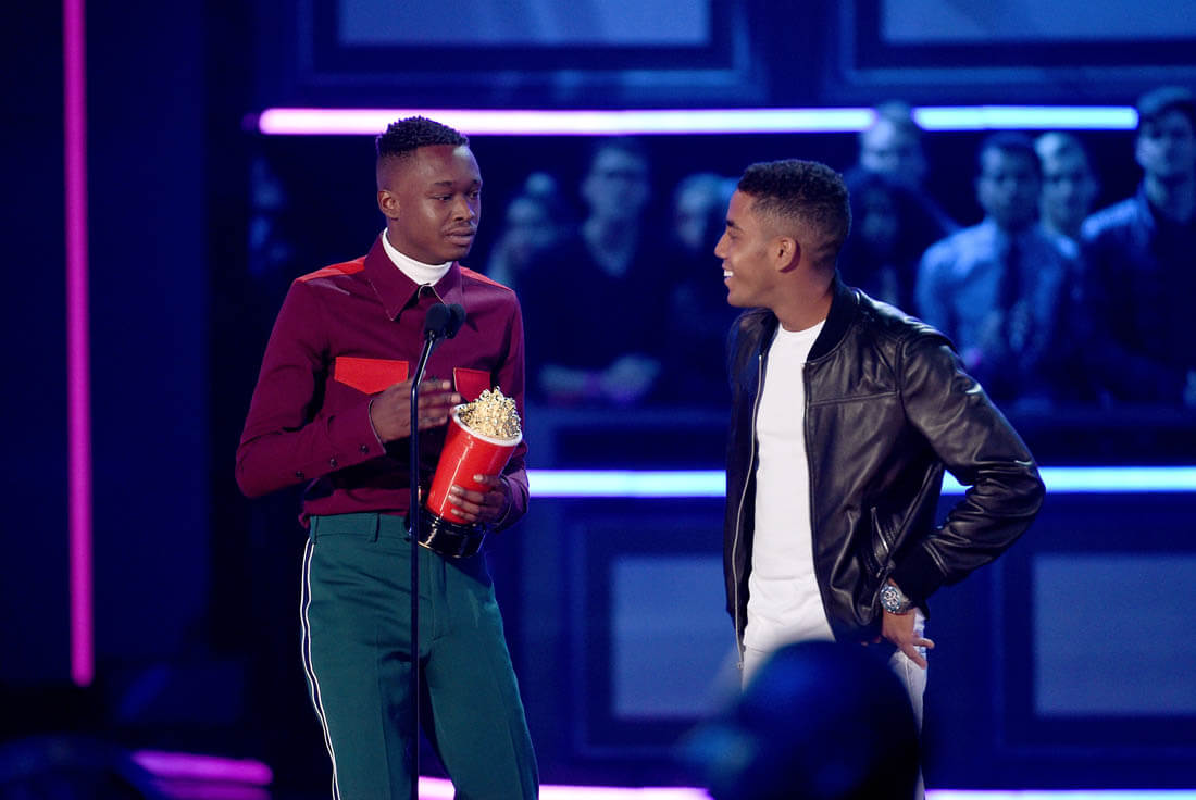 The category that the MTV Movie and TV Awards is probably most known for is Best Kiss. This year the Best Kiss Award went to Moonlight actors Ashton Sanders and Jharrel Jerome. Have you seen Moonlight yet? If not, I’m yelling at you. SEE MOONLIGHT. It’s a gorgeous film and it’s a gorgeous kiss – on the beach, by moonlight, tentative, sweet, and heartbreaking, everything a kiss is in a Nicholas Sparks movie, only this movie is about black men, black male vulnerability, and black love, celebrated in front of a crowd that will hopefully internalise this message and externalise it within their own communities. As Ashton and Jharrel said last night, this kiss was not just a kiss: