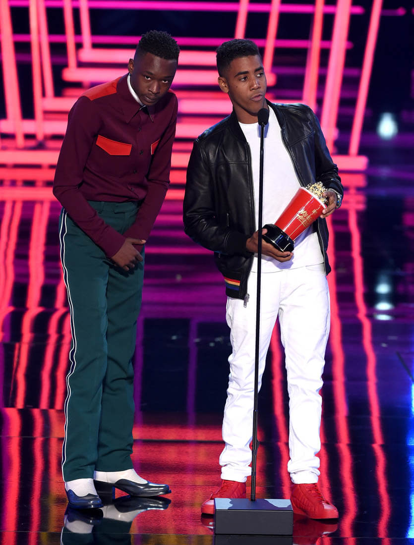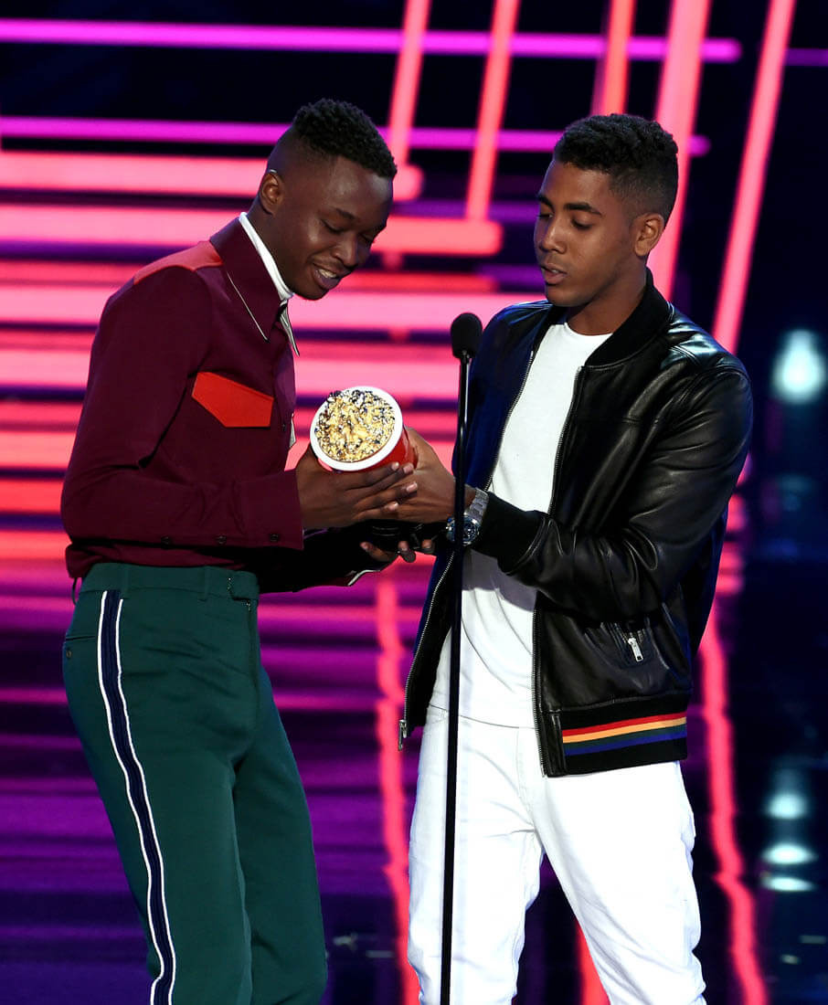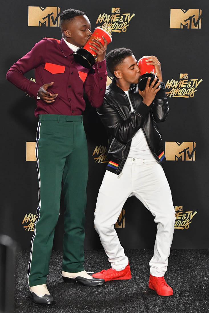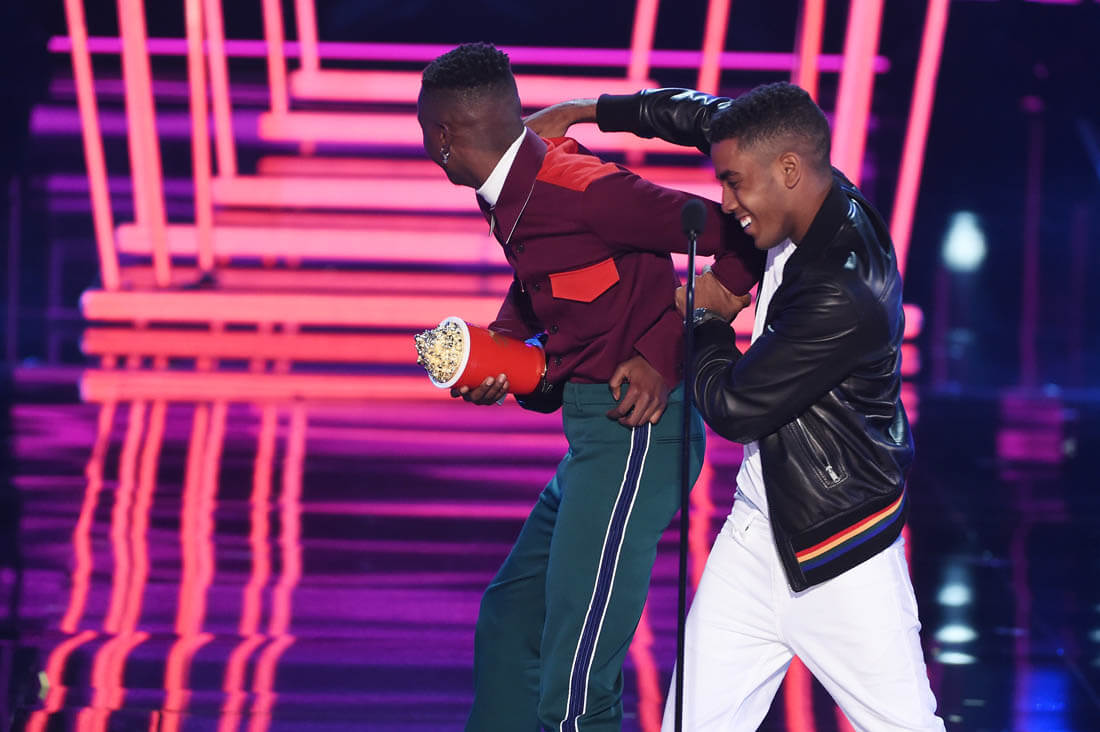 The category that the MTV Movie and TV Awards is probably most known for is Best Kiss. This year the Best Kiss Award went to Moonlight actors Ashton Sanders and Jharrel Jerome. Have you seen Moonlight yet? If not, I’m yelling at you. SEE MOONLIGHT. It’s a gorgeous film and it’s a gorgeous kiss – on the beach, by moonlight, tentative, sweet, and heartbreaking, everything a kiss is in a Nicholas Sparks movie, only this movie is about black men, black male vulnerability, and black love, celebrated in front of a crowd that will hopefully internalise this message and externalise it within their own communities. As Ashton and Jharrel said last night, this kiss was not just a kiss:
