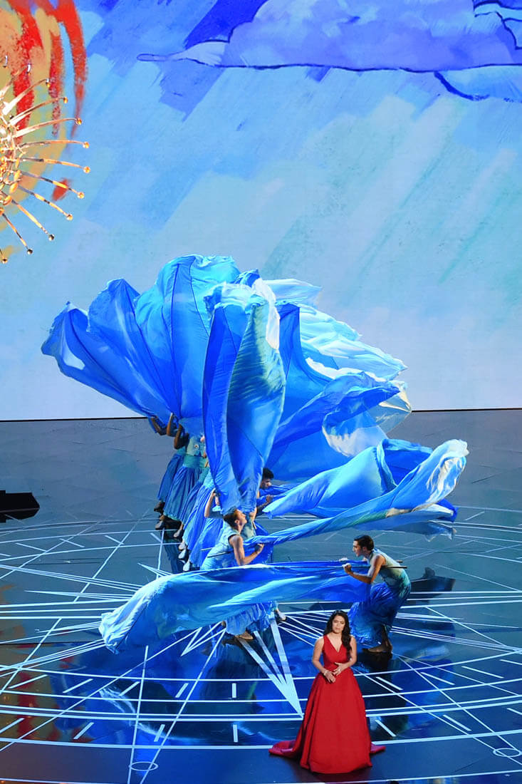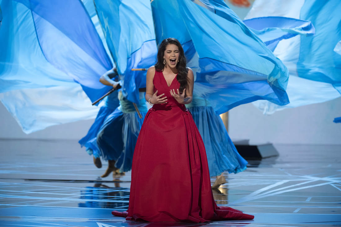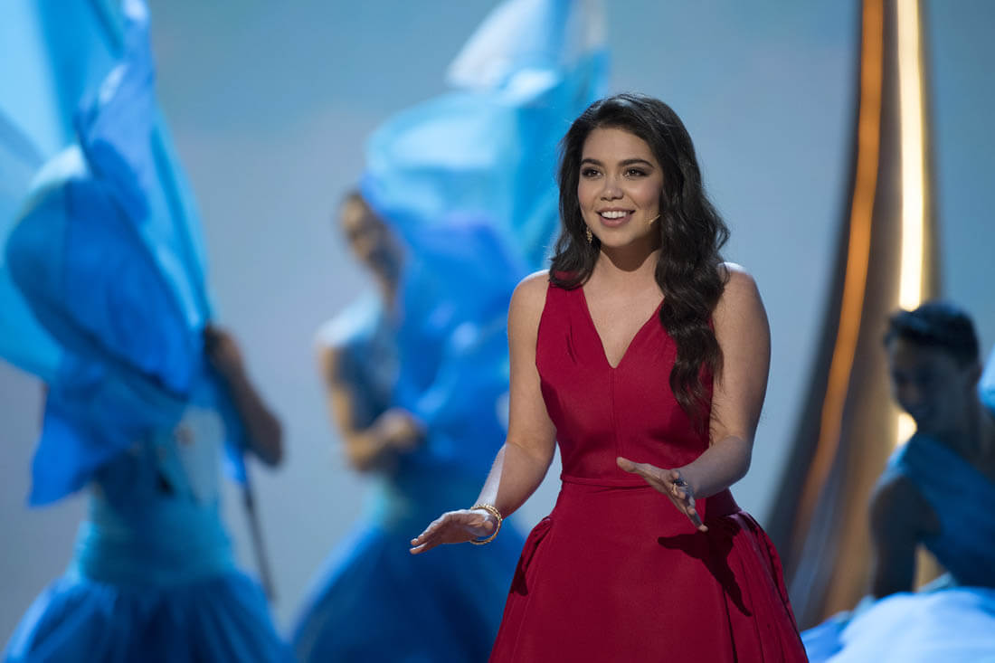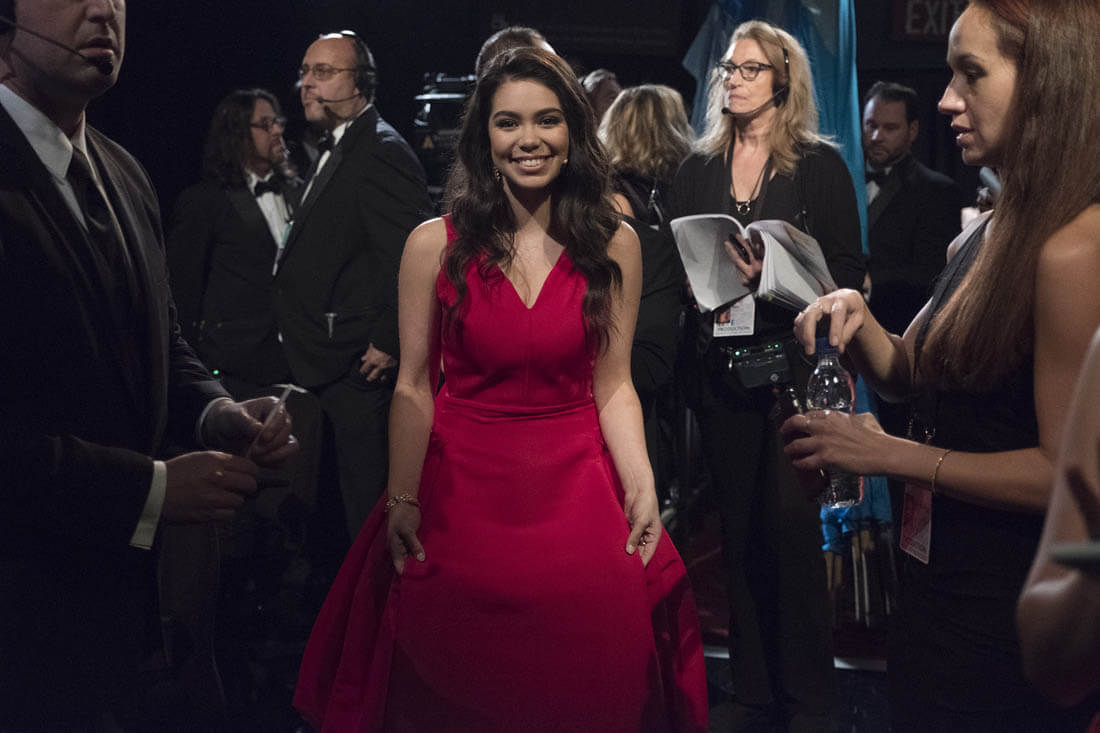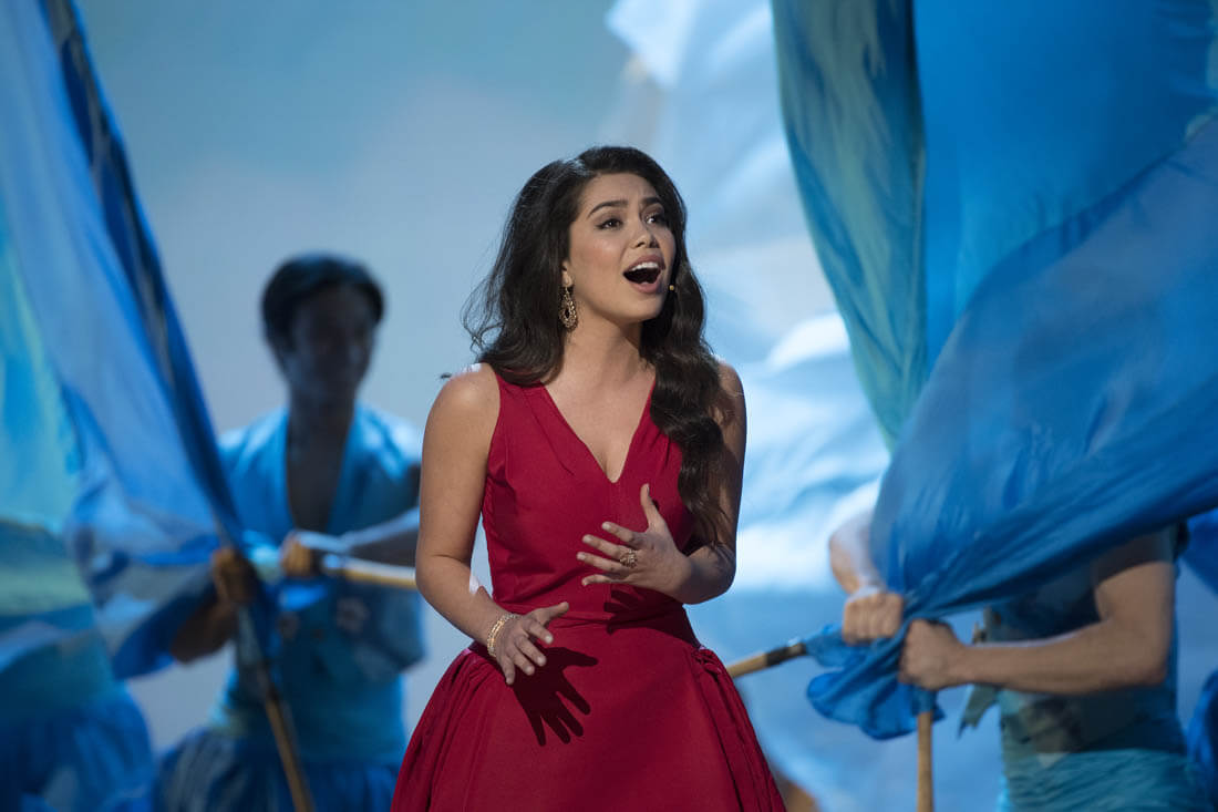 Because if we have to define it, if we have to make a finite law on exactly why and how she is a star (we don’t, but anyway), then I am bound to point out that Auli’i Cravalho, who has that magnetic quality and whose IMDB lists no projects not connected to Moana, is a star because she was smacked in the head with a flag held by one of her dancers and did not miss a beat.
