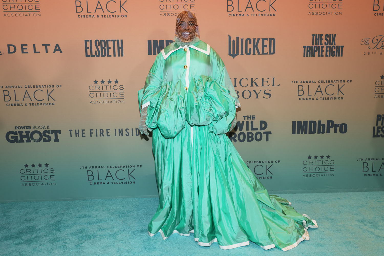 I mostly want to discuss Aunjanue Ellis-Taylor out-Elphaba’ing Elphaba herself with this voluminous green dress. Ellis-Taylor has shown herself to be an adventurous fashion girlie in the past, this outfit is pretty much par for the course. That’s not a criticism, we need adventurous dressers to keep red carpet events interesting, and Aunjanue has gone full-Elphaba here, if Elphaba were like, dressing for a sleepover. This outfit is very pajama coded, minus the headpiece and gloves.