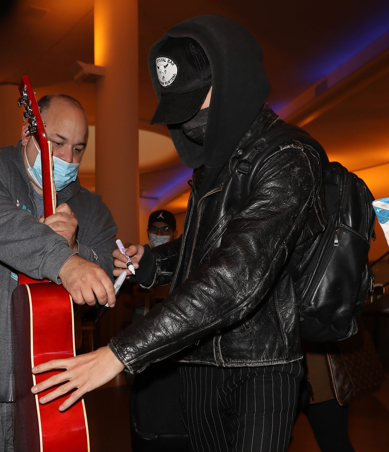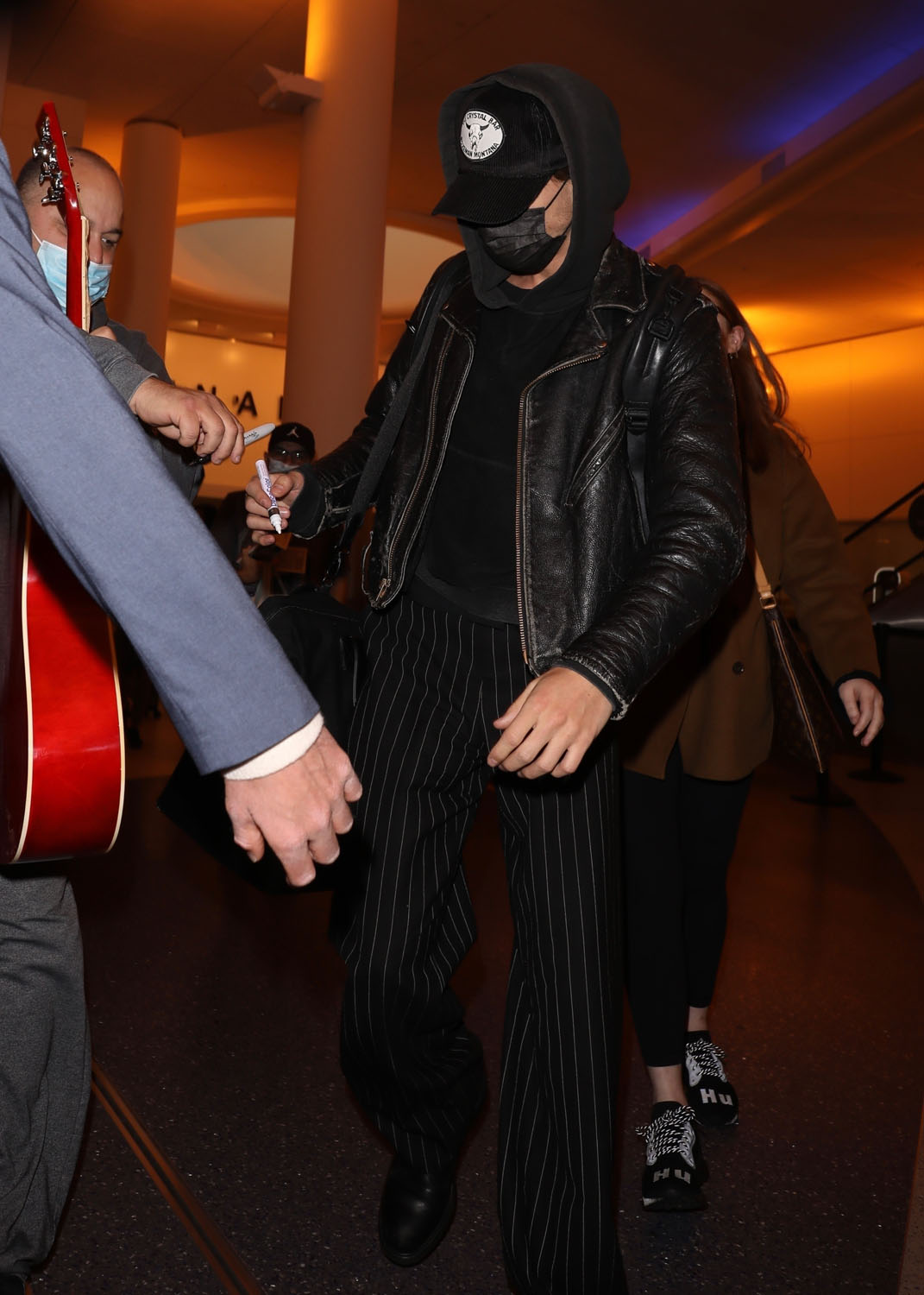 Here’s Butler arriving back in Los Angeles yesterday. Do we think celebrities will stick with masks in public because they’re in it for the public good, or because it gives them an excuse to be less visible? Not that it’s working for Austin here.