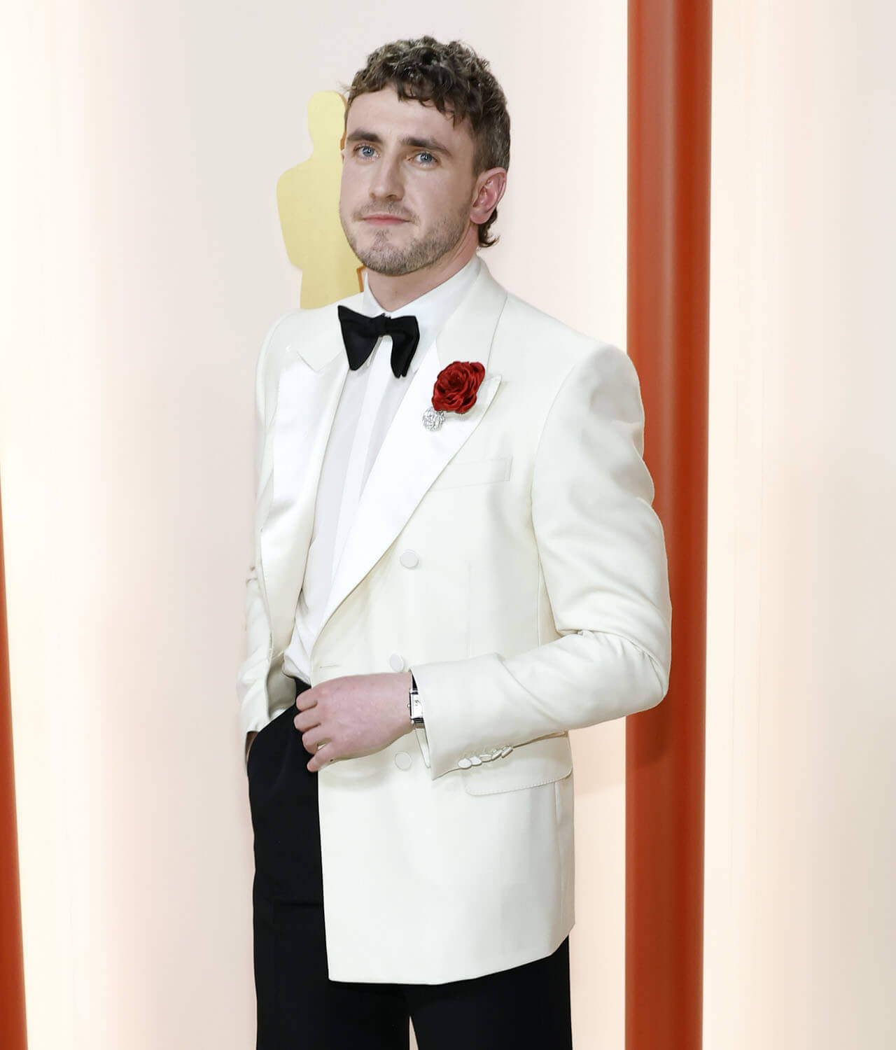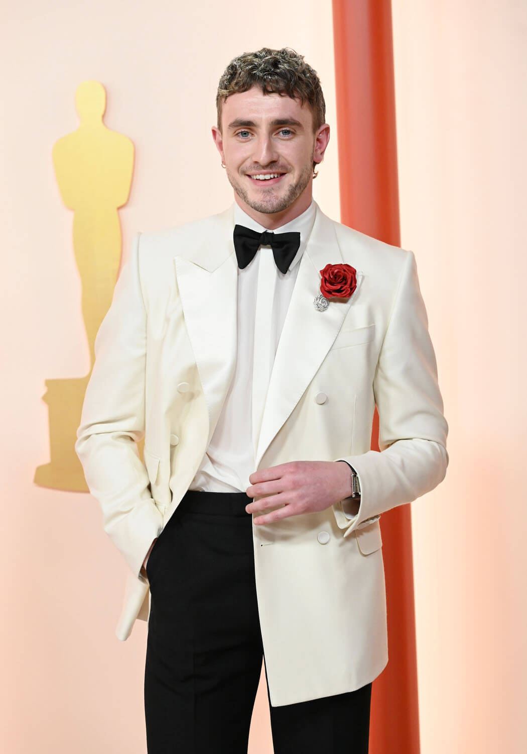 Going back to the beginning and what I said about Austin coasting through award season, Paul Mescal is also really enjoyed the ride. He came into last night with no expectations, literally just happy to be there in his 70s style formal with the flared pant legs, and the red rose pinned to his white jacket. For the Vanity Fair party he ditched the shirt for a loose tank… it’s giving Scarface, right?