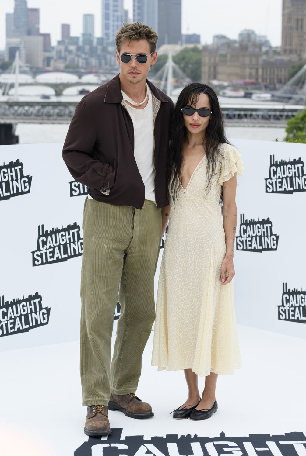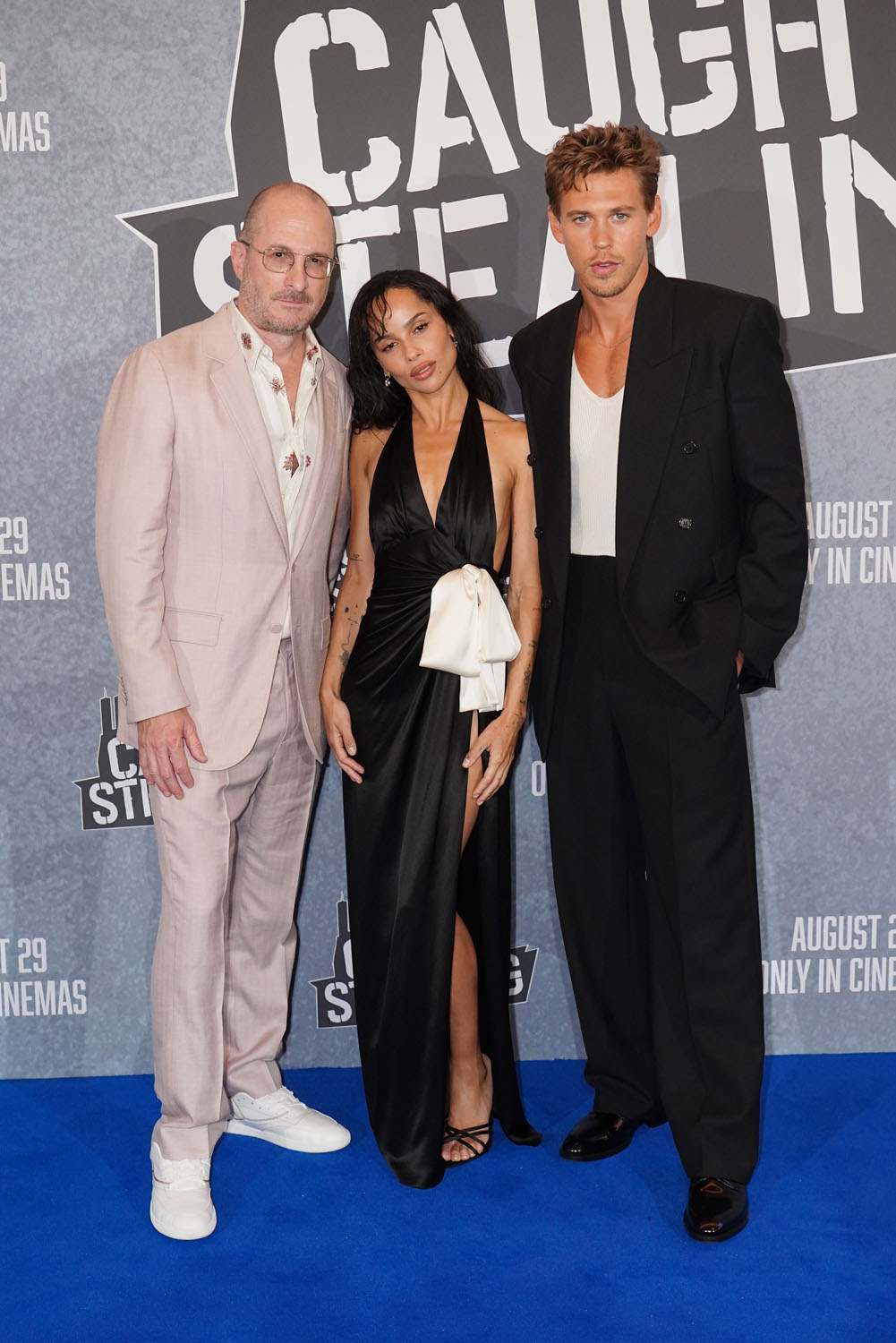 Austin Butler and Zoë Kravitz were in matching black and white last night in London for the UK premiere of Darren Aronofsky’s Caught Stealing, opening on August 29. This casting combo is the selling feature, especially for the internet, which in some corners has been theorising that these two at some point hooked up or are still hooking up.